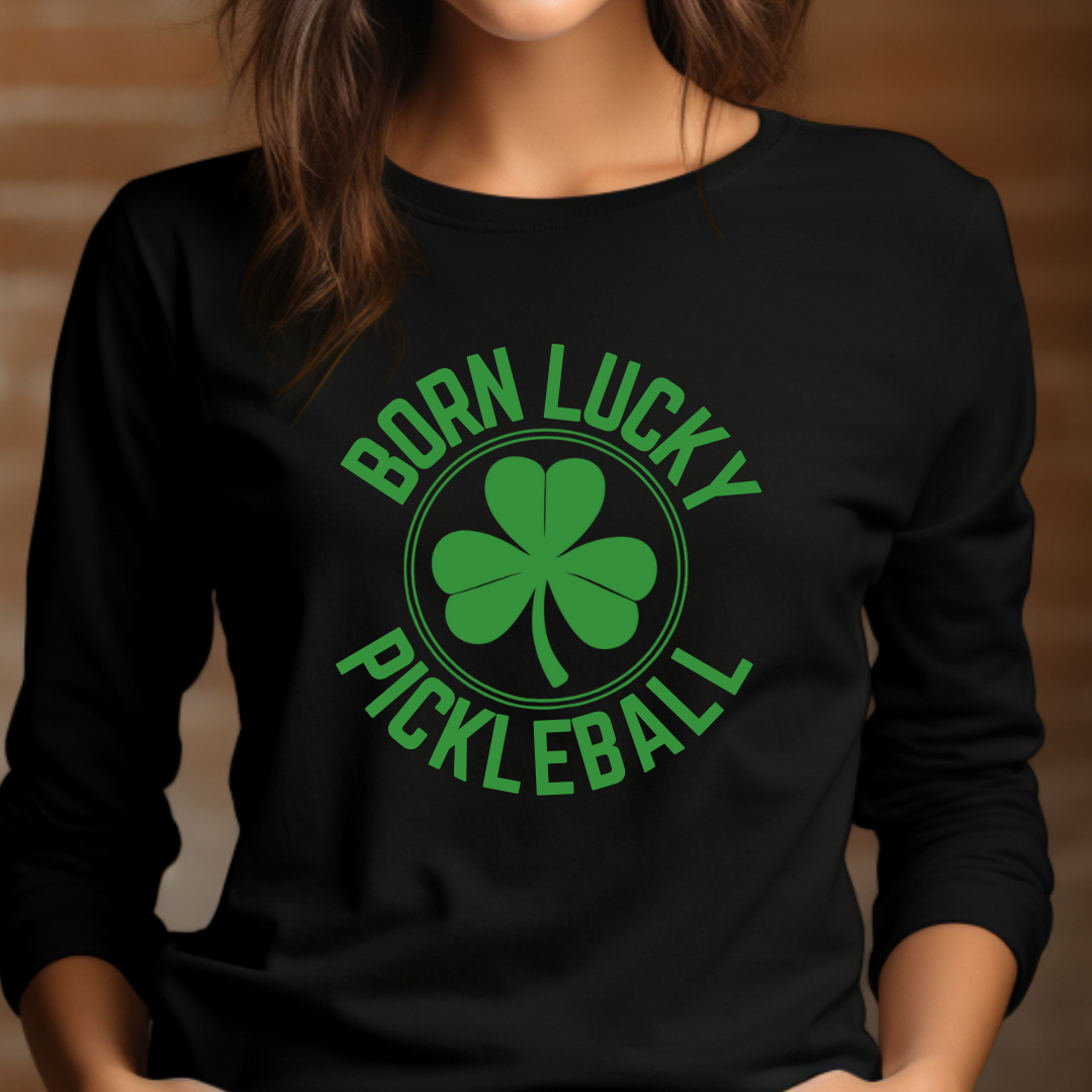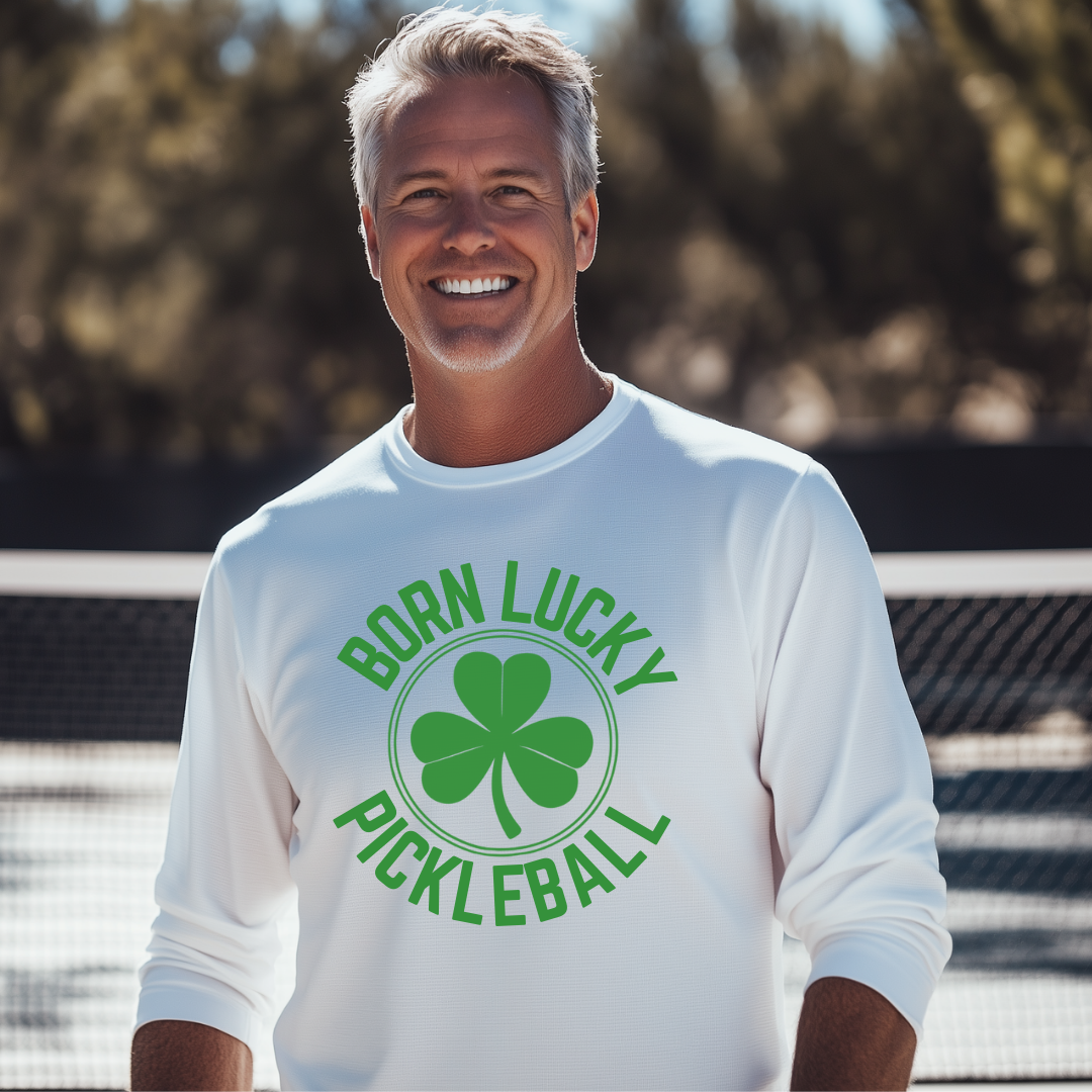 Some call it luck, others call it skill—you just know how to win. Whether it's skill, strategy, or just a good bounce, bring a little extra swagger to your game in this Born Lucky long sleeve pickleball tee.