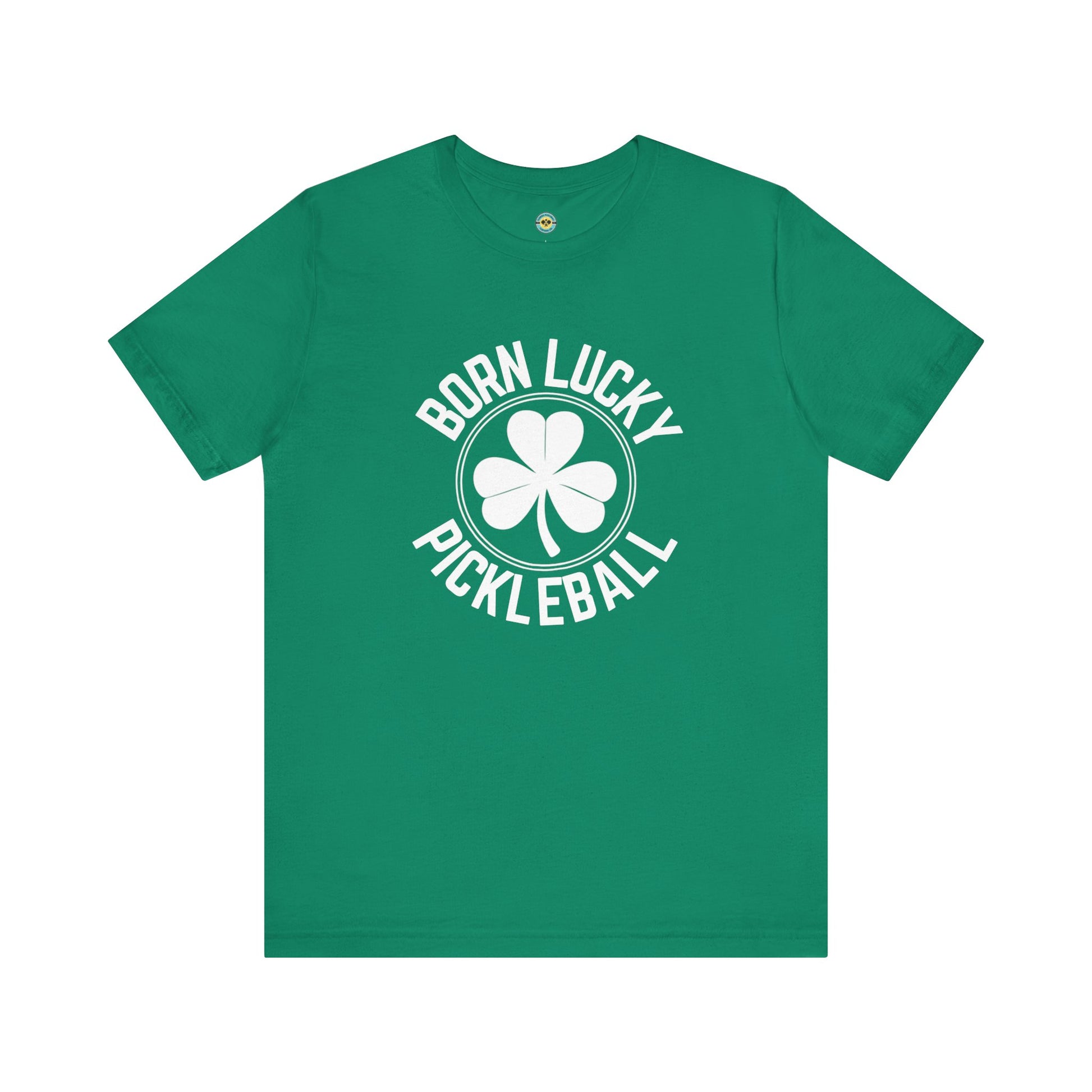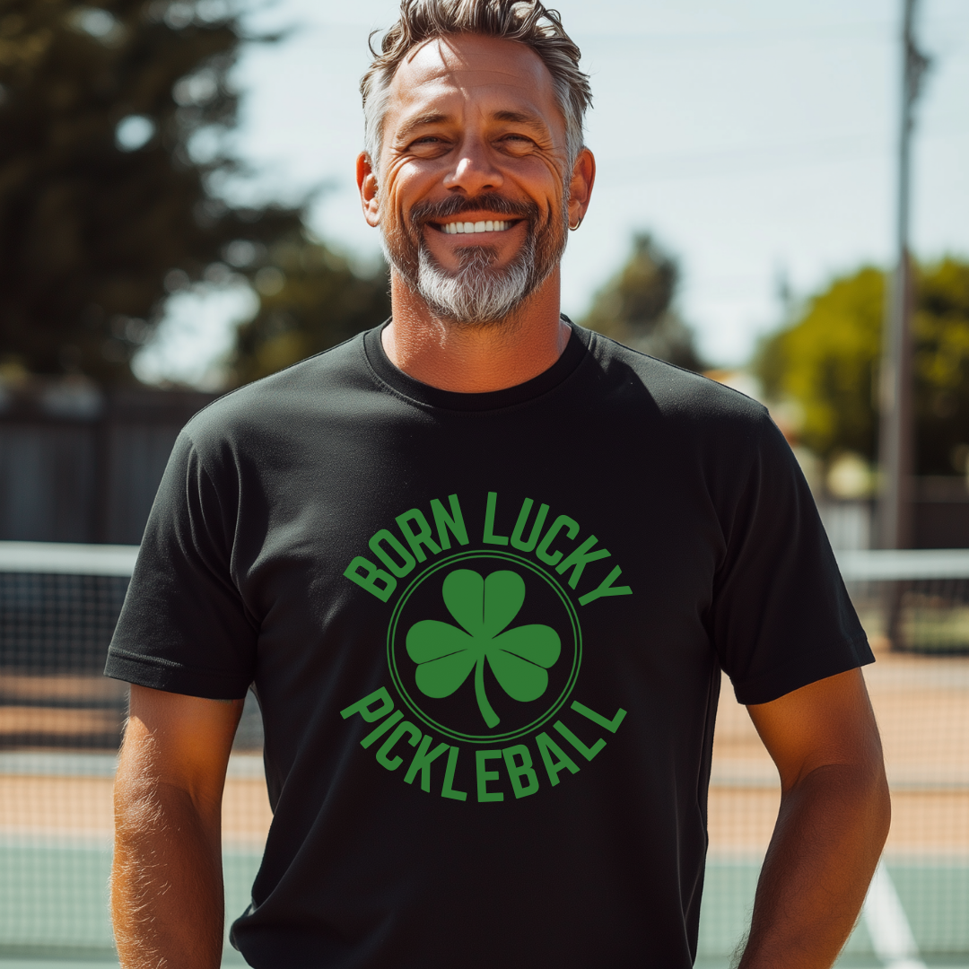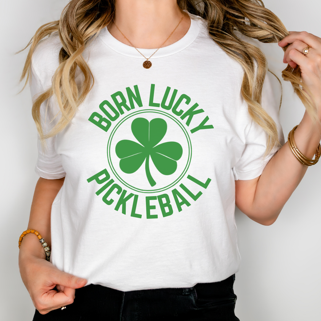 Some call it luck, others call it skill—you just know how to win. Whether it's skill, strategy, or just a good bounce, bring a little extra swagger to your game in this Born Lucky pickleball tee.