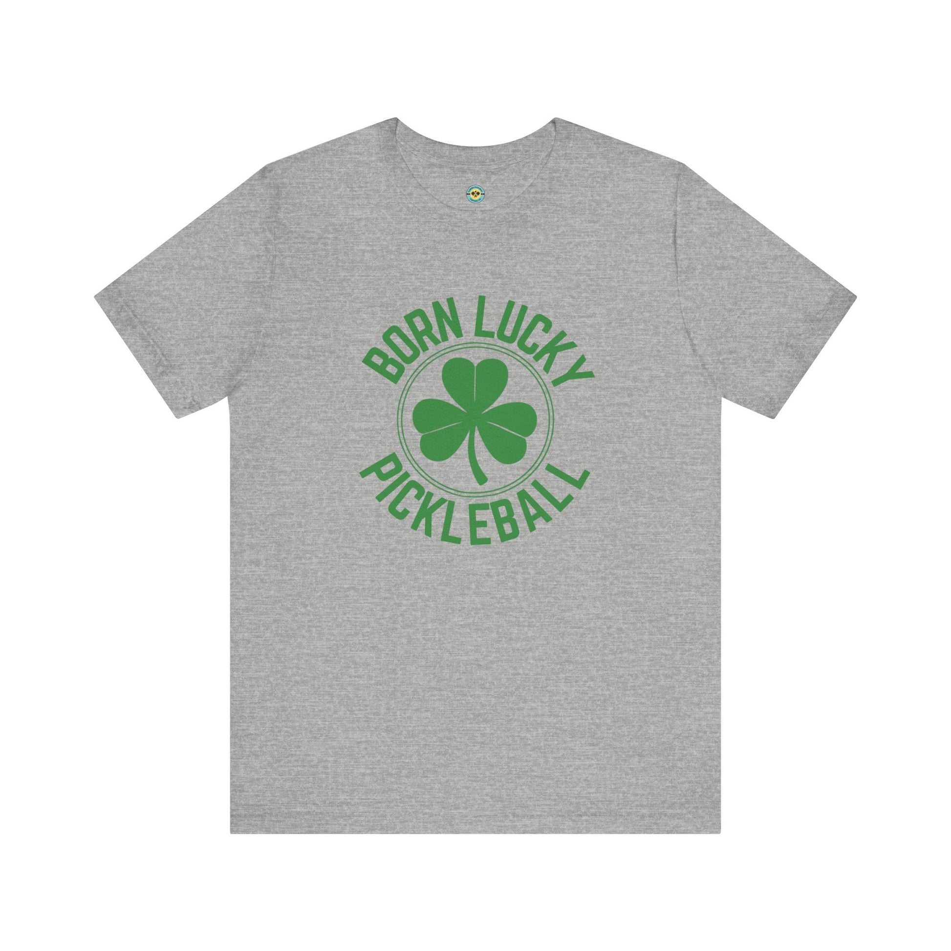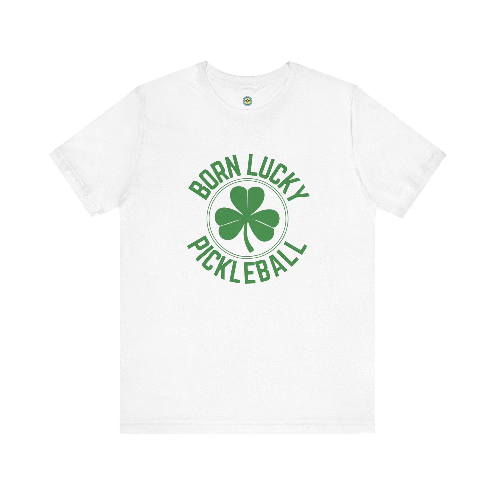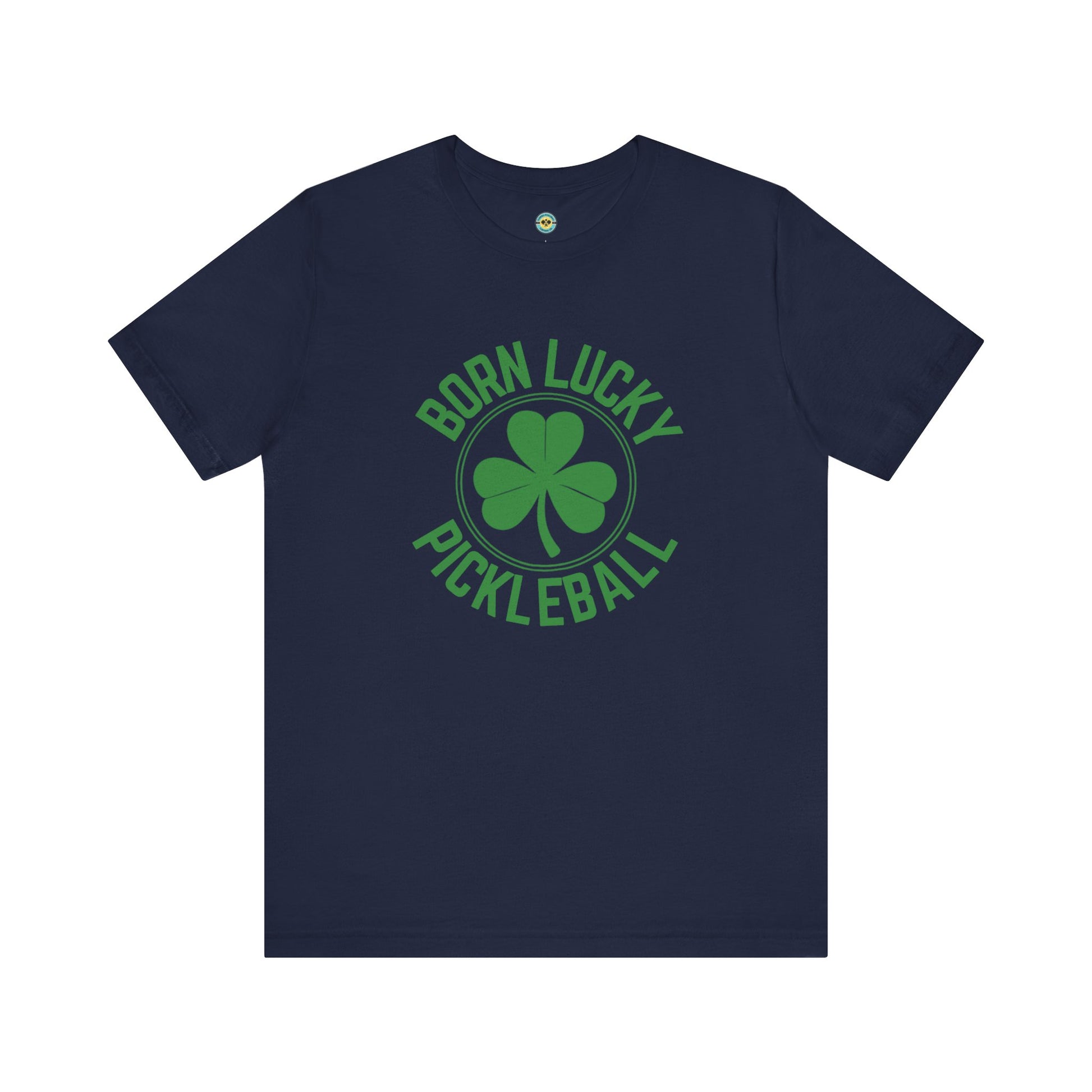 Some call it luck, others call it skill—you just know how to win. Whether it's skill, strategy, or just a good bounce, bring a little extra swagger to your game in this Born Lucky pickleball tee.