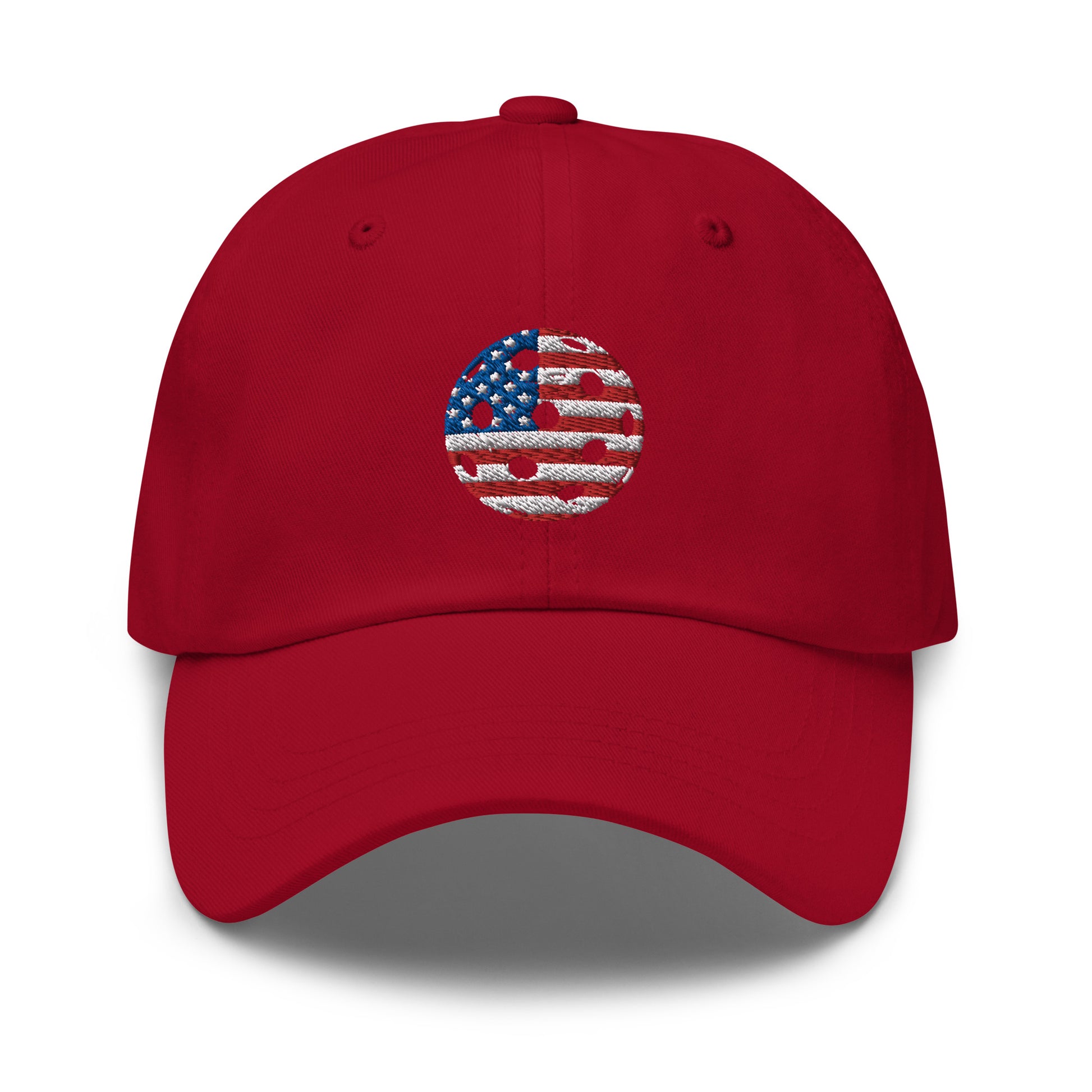 Show your pickleball pride with a patriotic twist in our Stars and Stripes pickleball cap, featuring a custom designed stars and stripes pickleball. It's your perfect go-to for celebrating the game and the USA in style.
