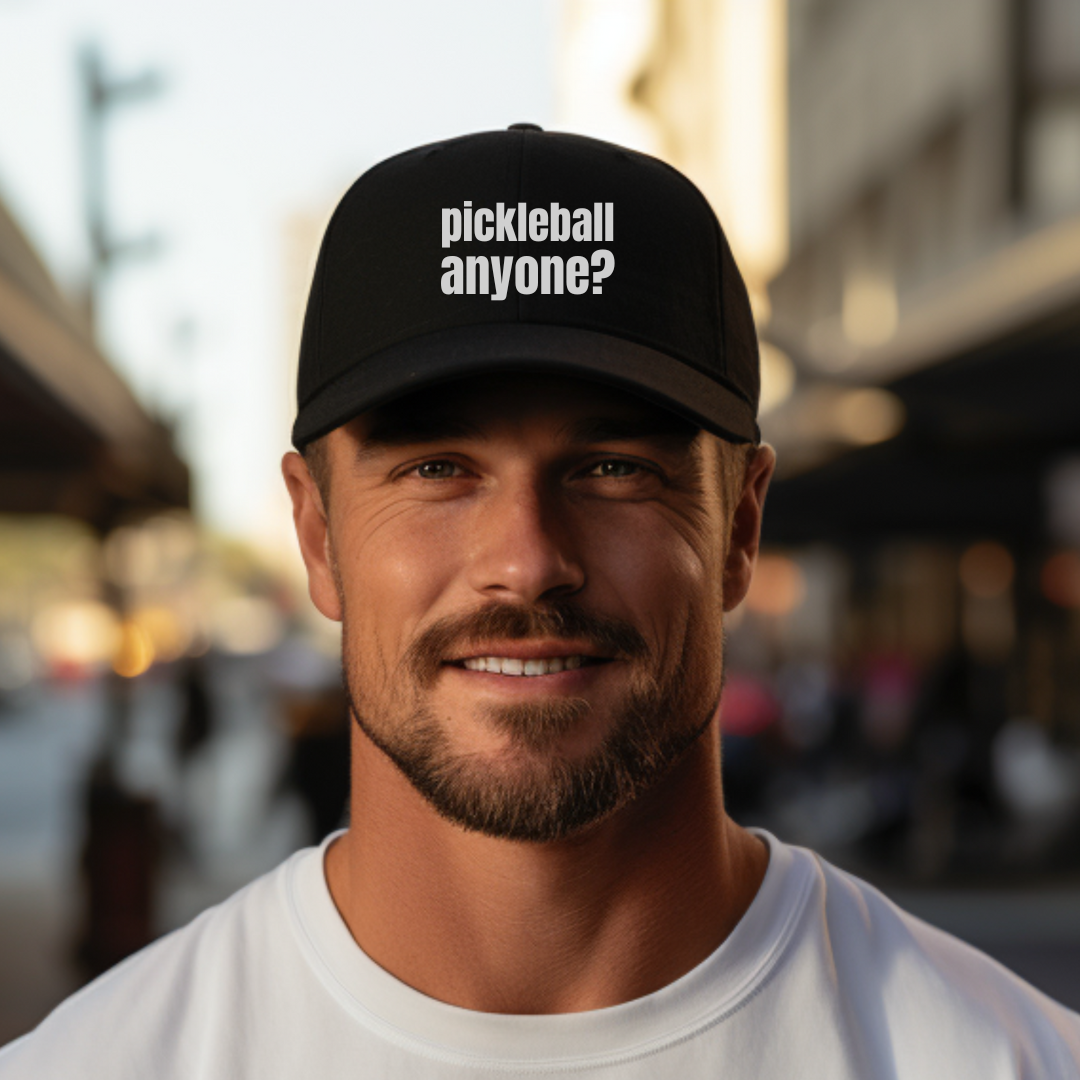 Looking for some court time? Our "pickleball anyone?" cap is perfect for anyone who can't get enough of this great game. Grab your paddle, hit the court, and let's play!