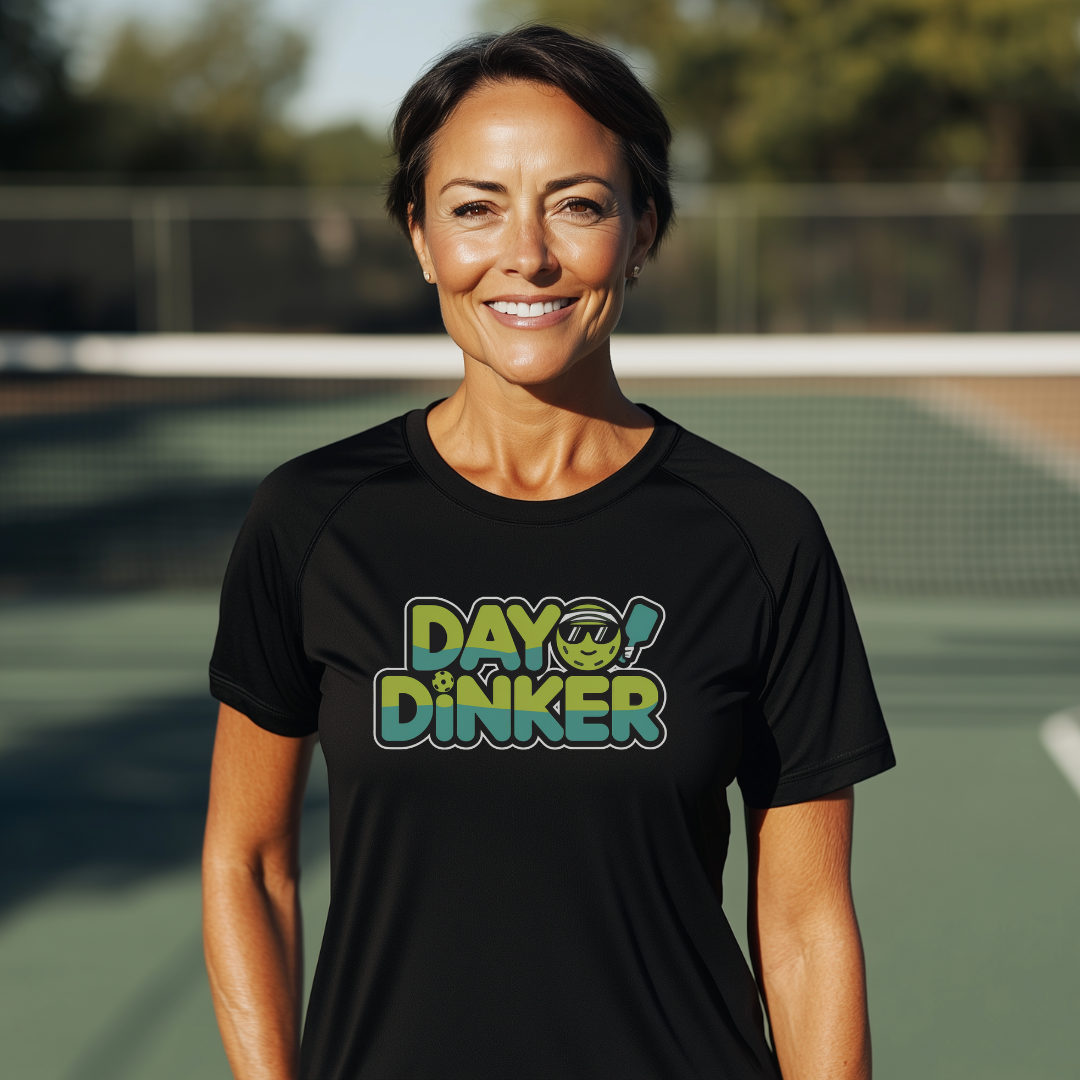 If your ideal day starts with a pickleball paddle in hand, the "Day Dinker" tee is made for you. Whether you're dropping dinks at sunrise or playing until the lights go out, this soft and comfortable t-shirt celebrates your love for the soft game.