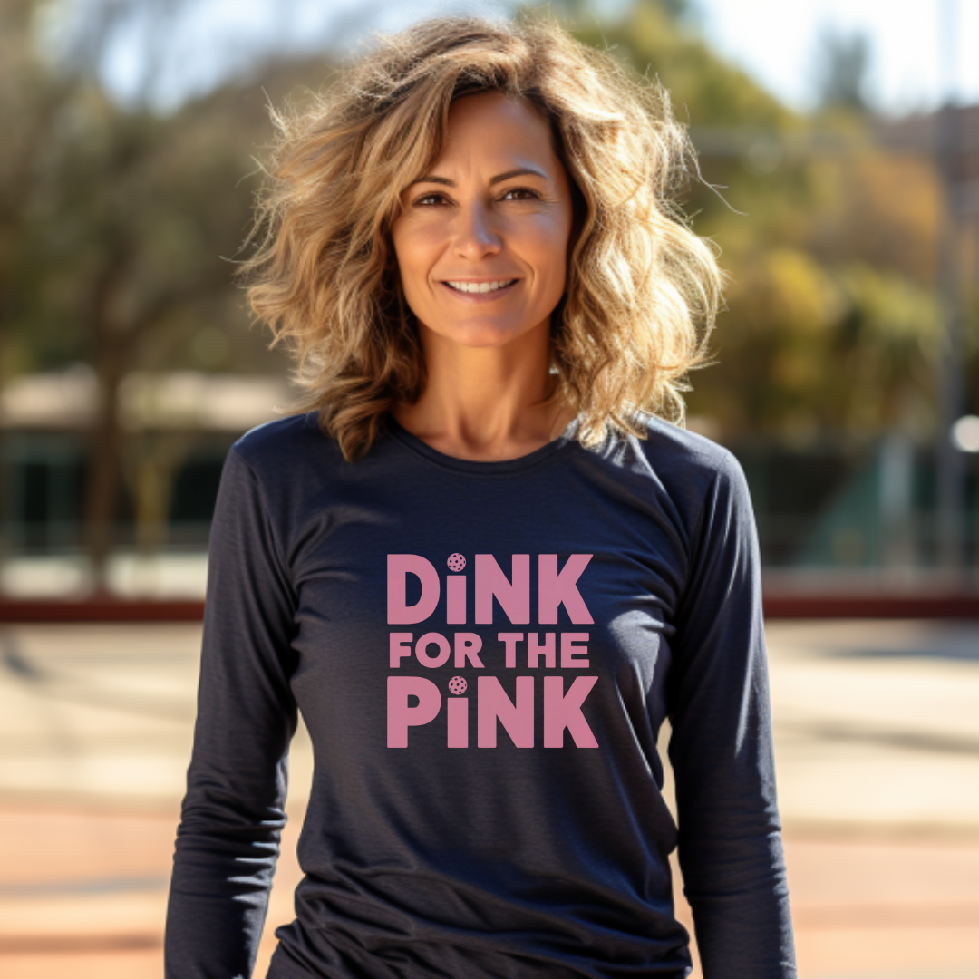Proudly show support for your pickleball sisters in their battle on and off the court. Whether they or you are facing this tough fight, share the love with the Dink For The Pink long sleeve tee.