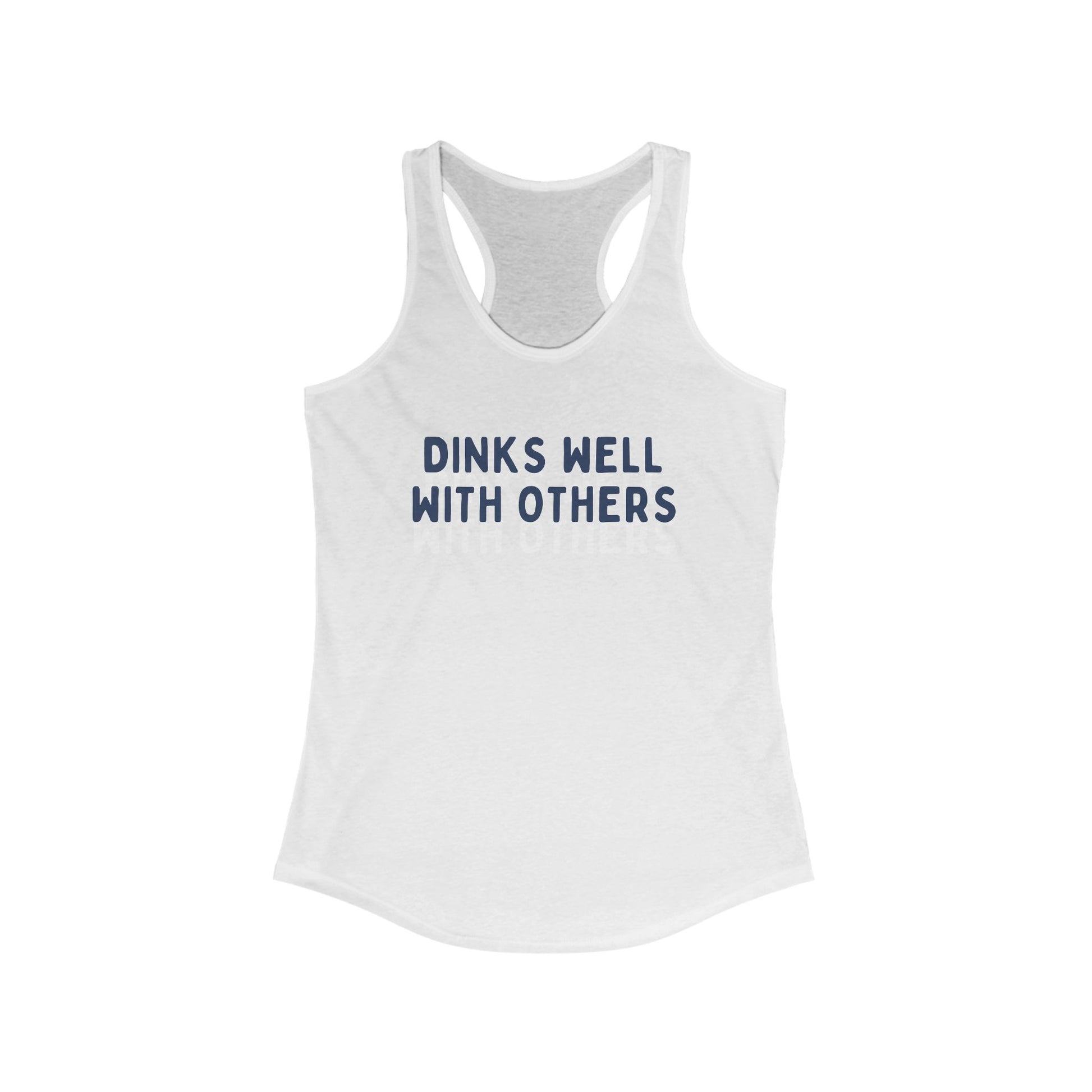 If you love playing pickleball with friends, this "Dinks Well with Others" racerback tank is for you! It’s an easy, laid-back way to show you enjoy both the game and great company. Wear it to your next match and let everyone know you're all about fun and friendly competition.