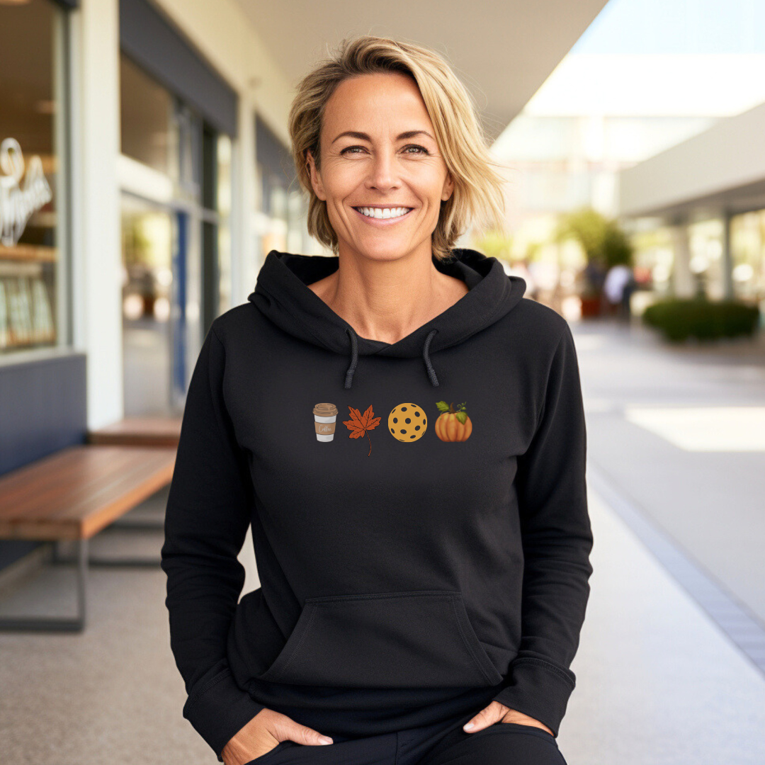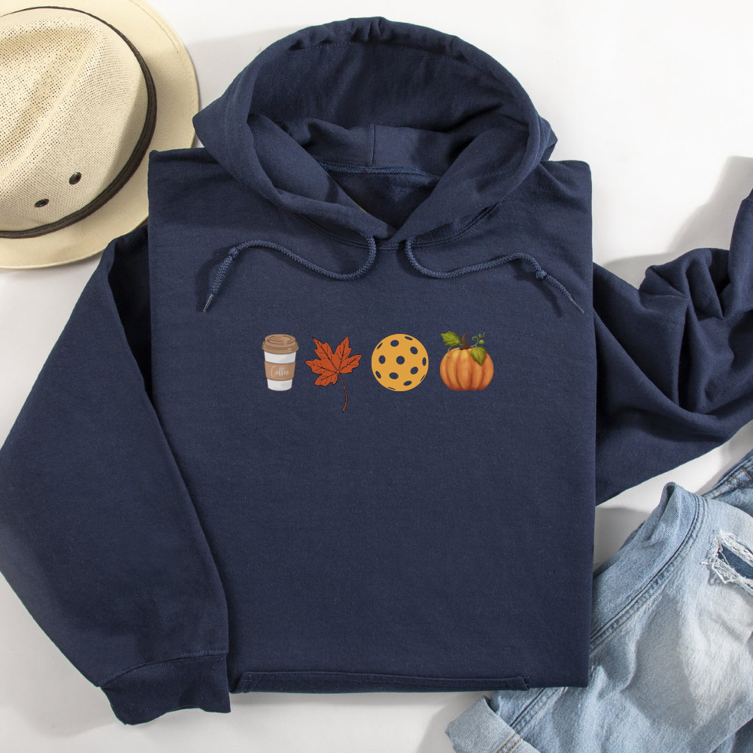 Hot coffee, colorful leaves, fresh pumpkins, and fall pickleball. What more could you ask for? This soft and comfortable hoodie says it all.