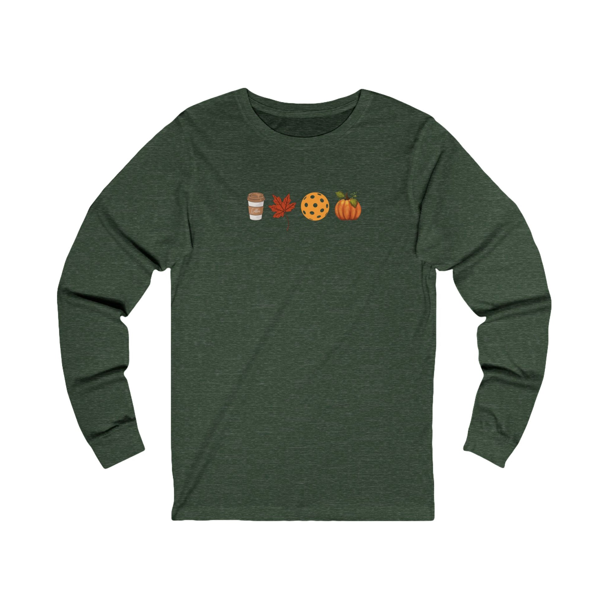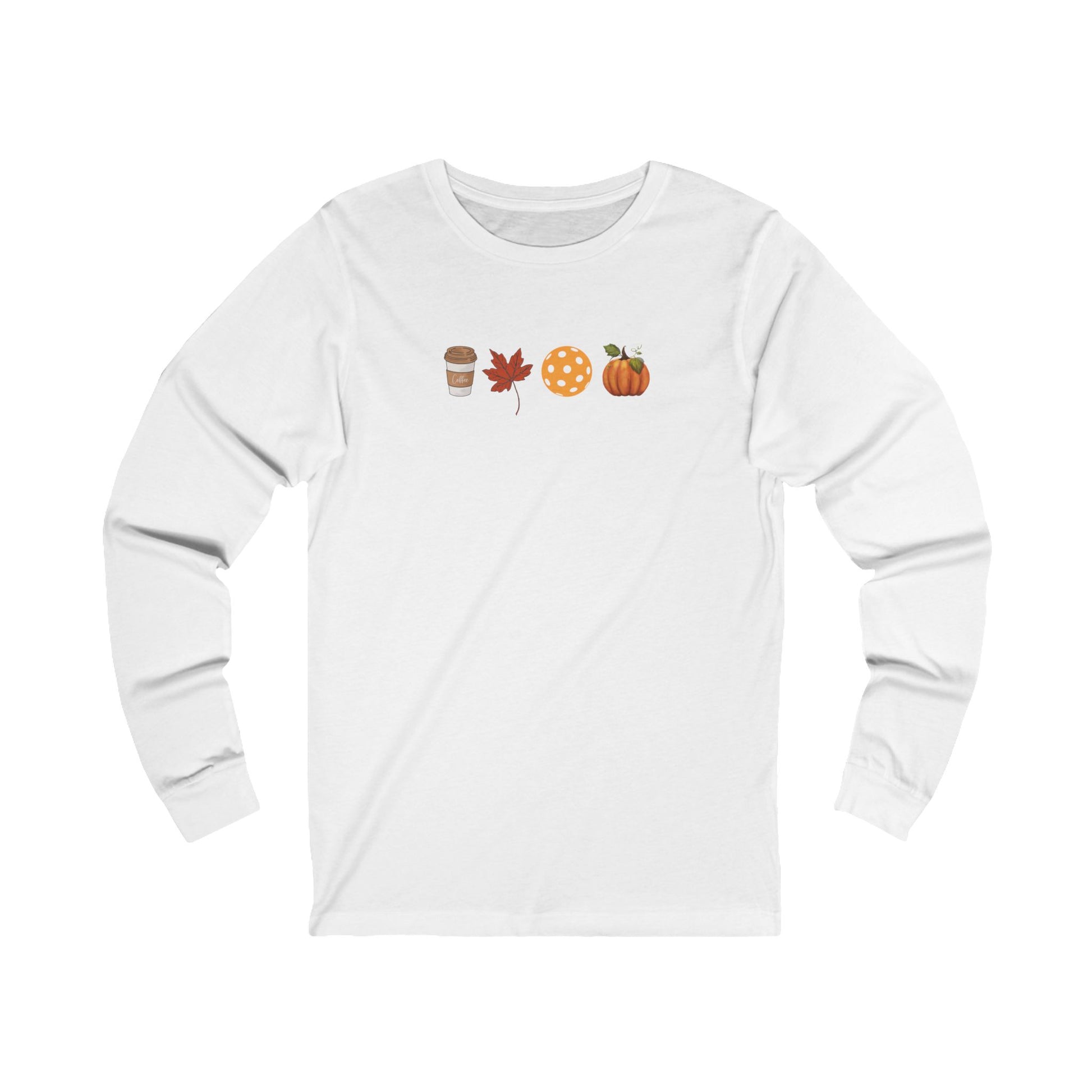 Hot coffee, colorful leaves, fresh pumpkins, and fall pickleball. What more could you ask for? This comfy long sleeve tee says it all.