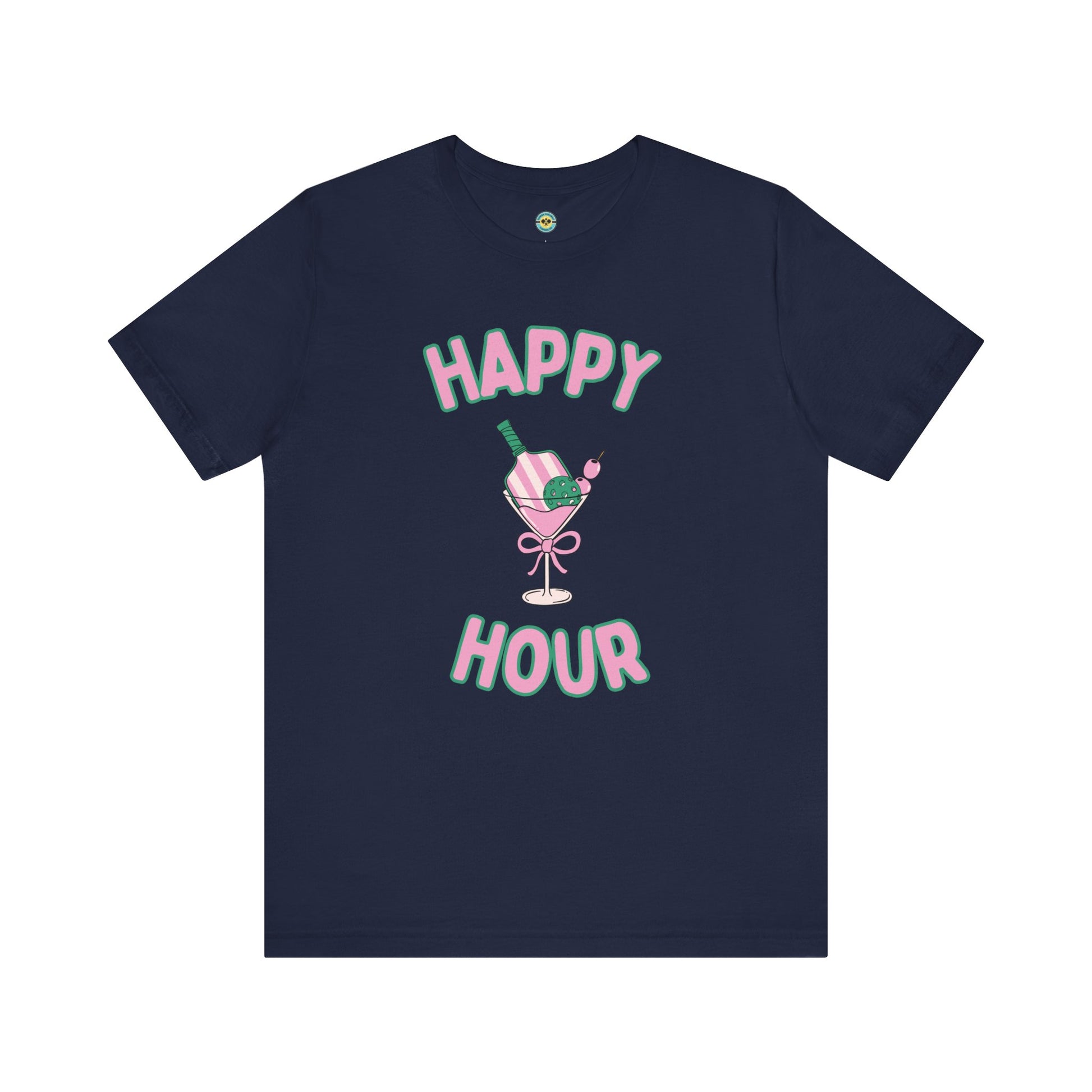 It's 5 o'clock somewhere, and any time you play pickleball it's Happy Hour. Celebrate your favorite sport with a cocktail and this soft, 100% cotton pickleball tee.