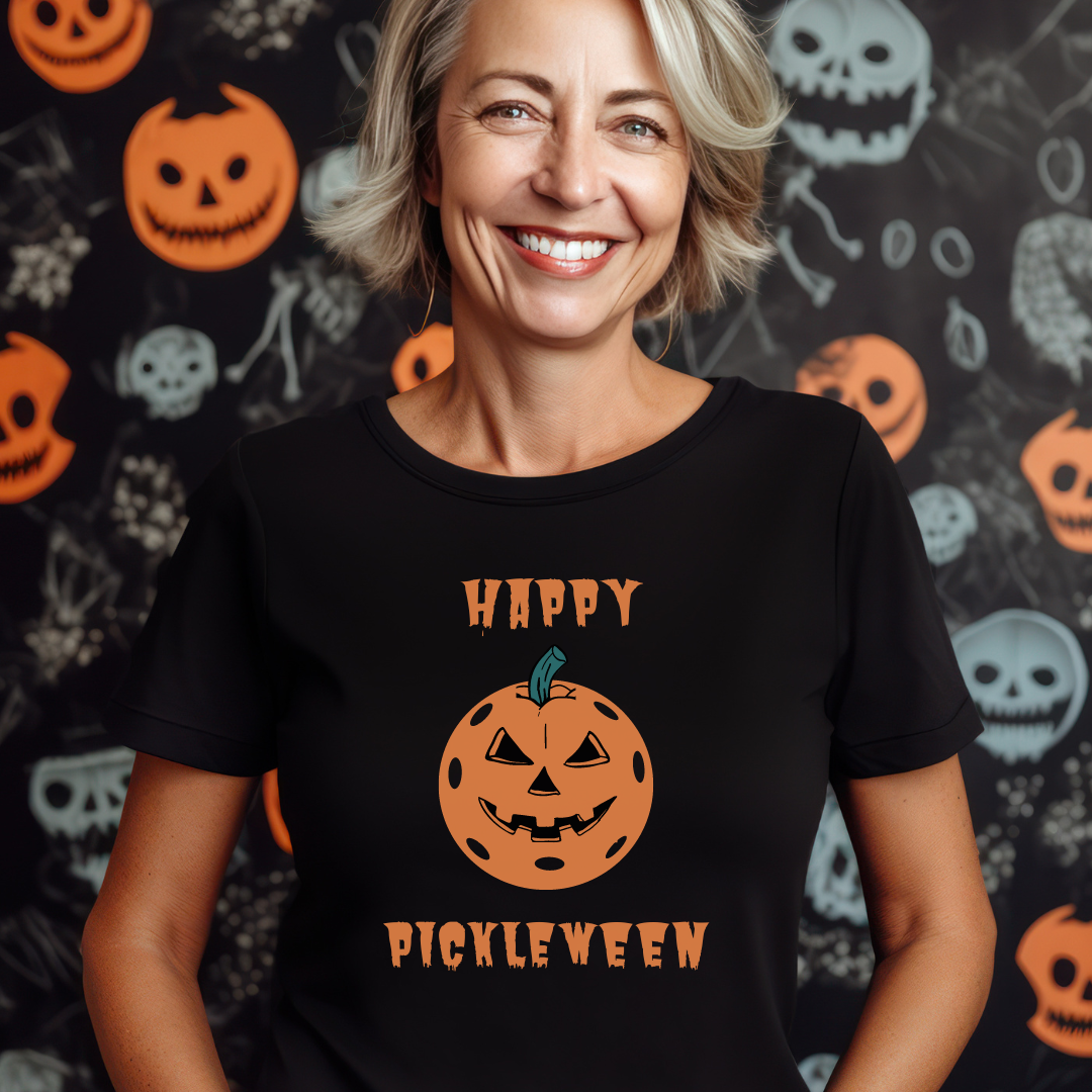 Serve up some spooky fun with the Happy Pickleween tee, designed for pickleball players who love Halloween almost as much as they love the game. Perfect for haunting the court with every eerie dink and spooky smash!