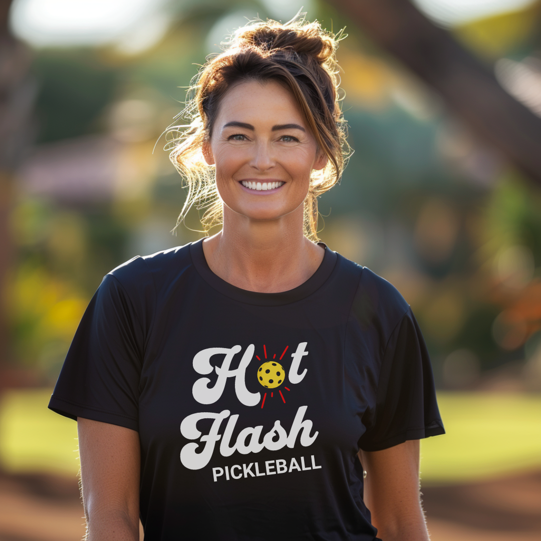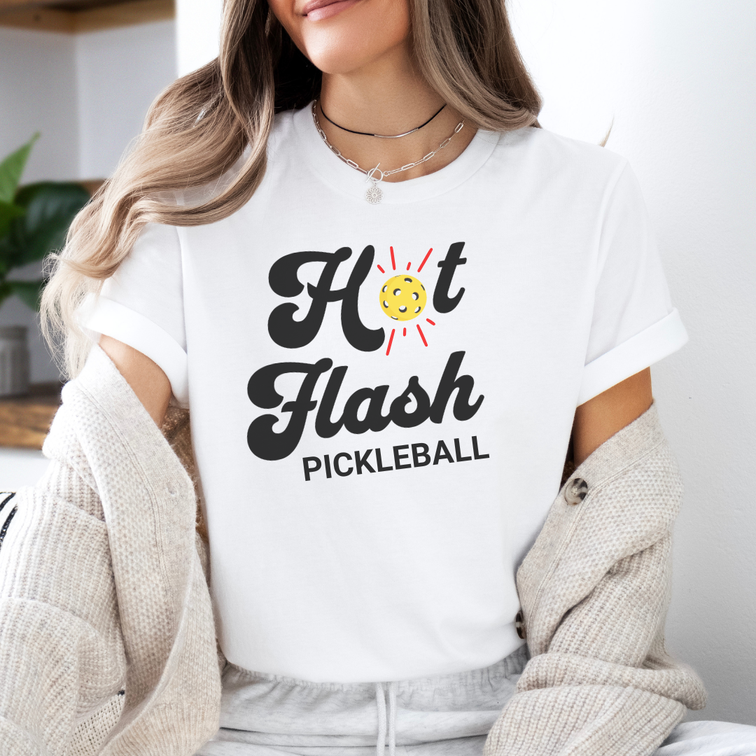 Turn up the heat with the "Hot Flash Pickleball" tee, made for players who can't seem to cool down—on or off the court! With "Bringing the Heat On And Off the Court" on the back, it’s a fun way to show you’re always on fire.