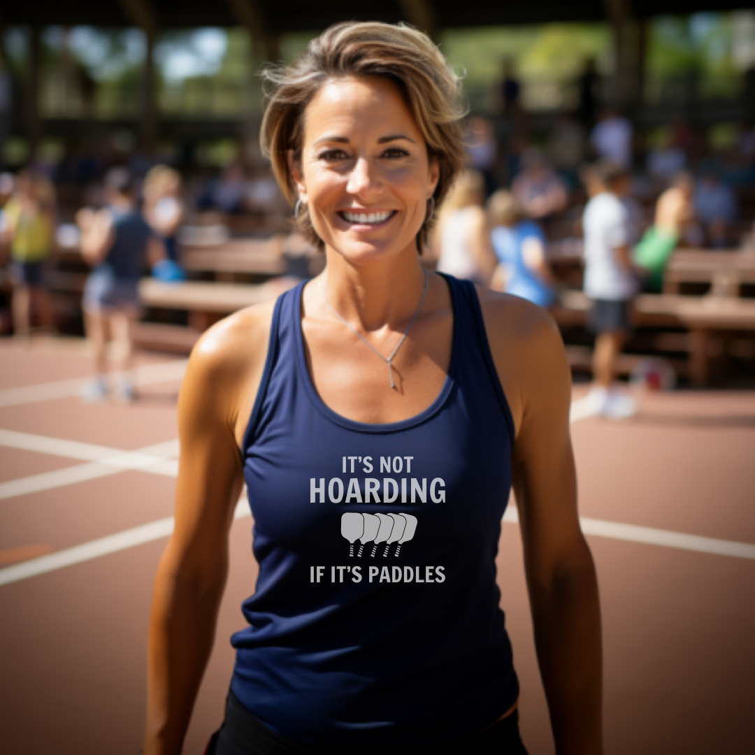 Embrace your pickleball obsession with the "It's Not Hoarding If It's Paddles" tank. Perfect for dedicated players who understand that collecting paddles isn't hoarding—it's just another level of commitment to the game we love, one paddle at a time.