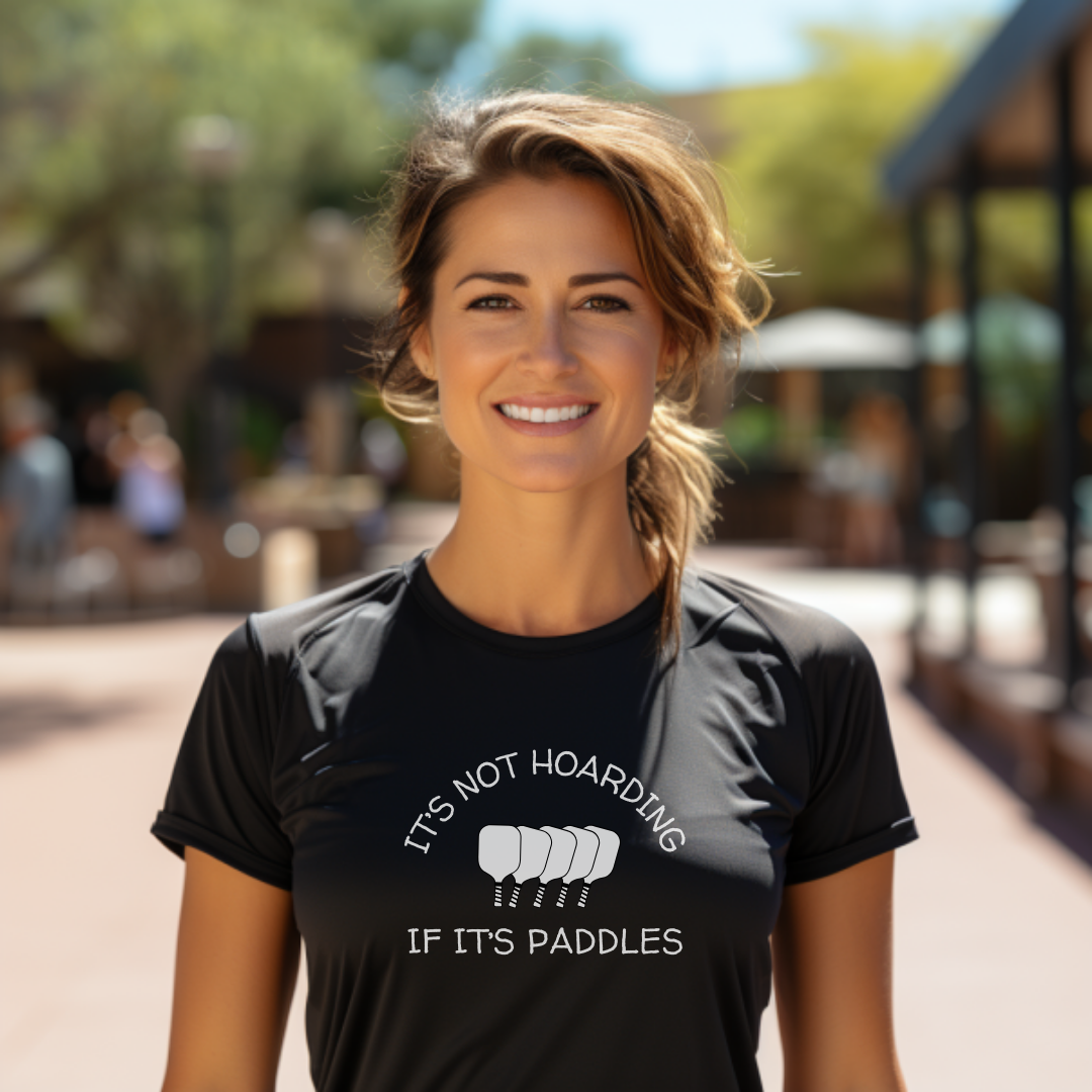 Embrace your pickleball obsession with the "It's Not Hoarding If It's Paddles" tee. Perfect for dedicated players who understand that collecting paddles isn't hoarding—it's just another level of commitment to the game we love, one paddle at a time.