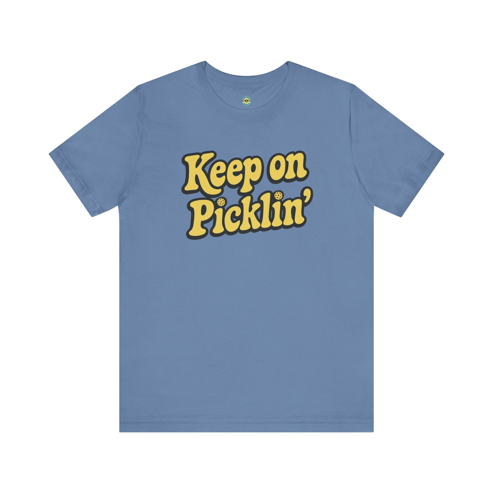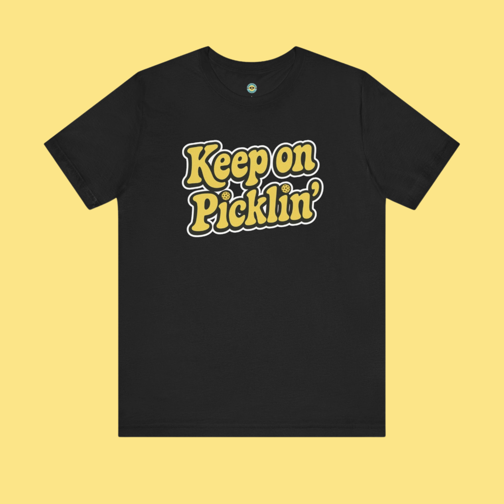 Easy vibes, good games, and a love for the sport that never quits. The Keep On Picklin’ pickleball tee brings a laid-back attitude to your everyday court style. Because the best kind of rhythm is the one that keeps you playing.