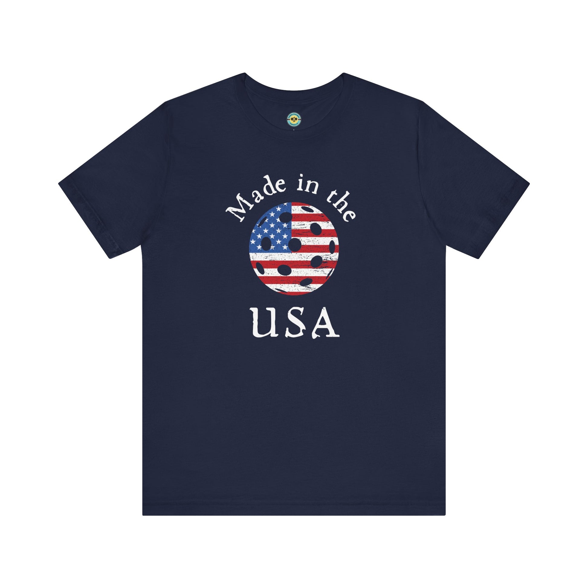 Let everyone know that pickleball is as American as apple pie! Show your pickleball pride with a patriotic twist in our "Made in the USA" pickleball tee, featuring a custom designed stars and stripes pickleball. It's your perfect go-to for celebrating the game and the USA in style.