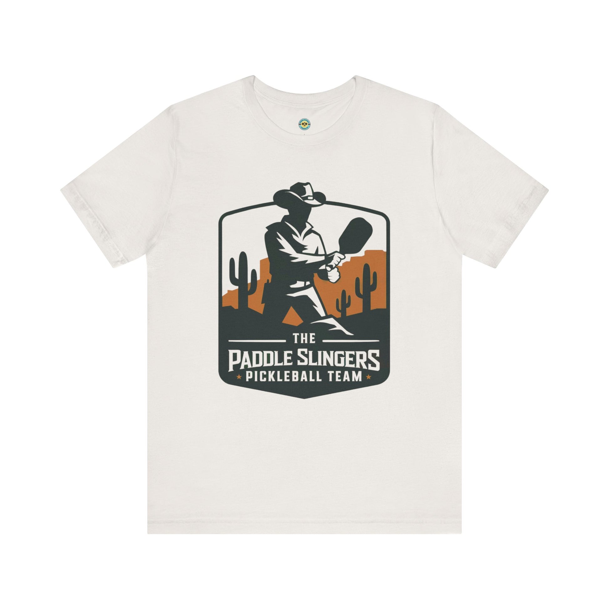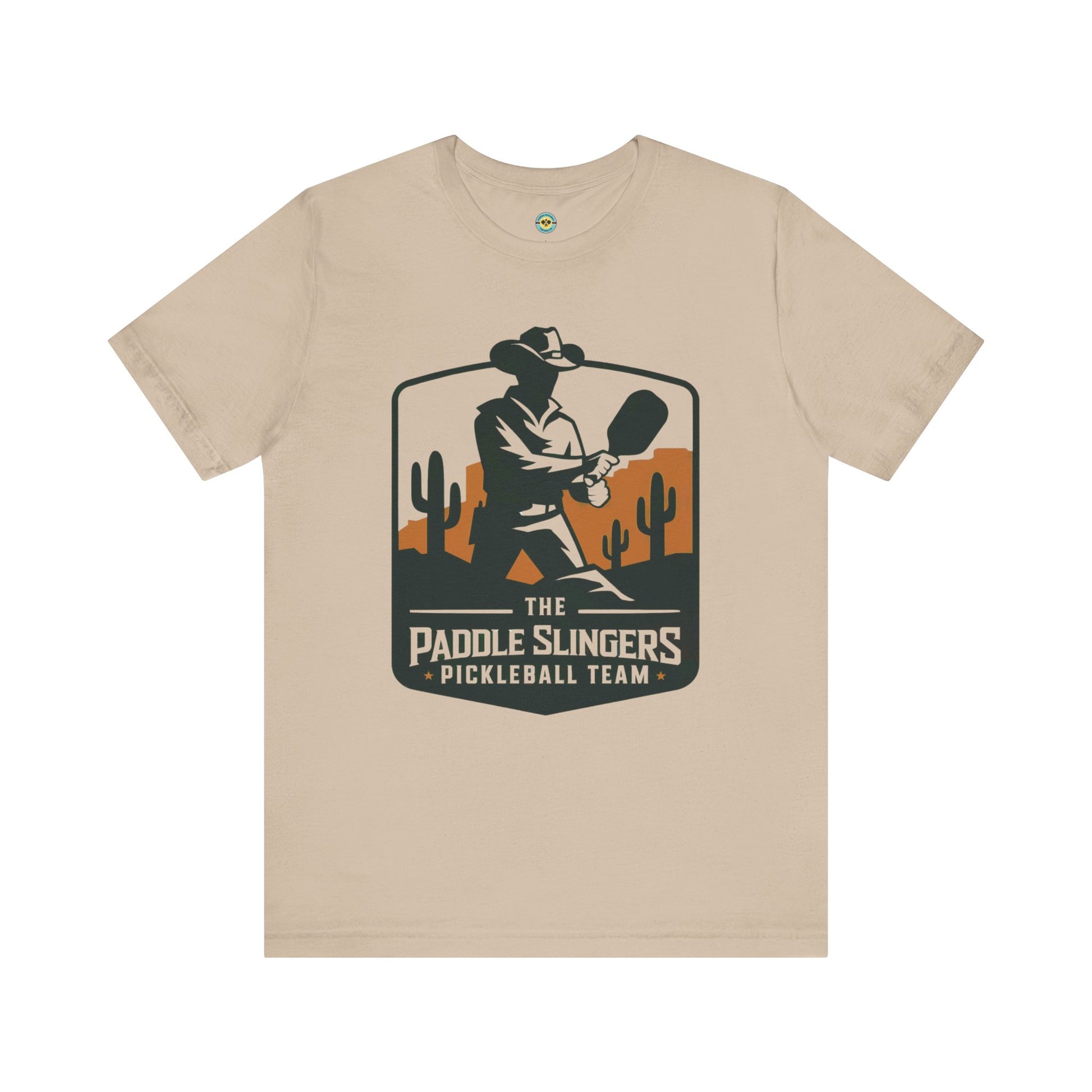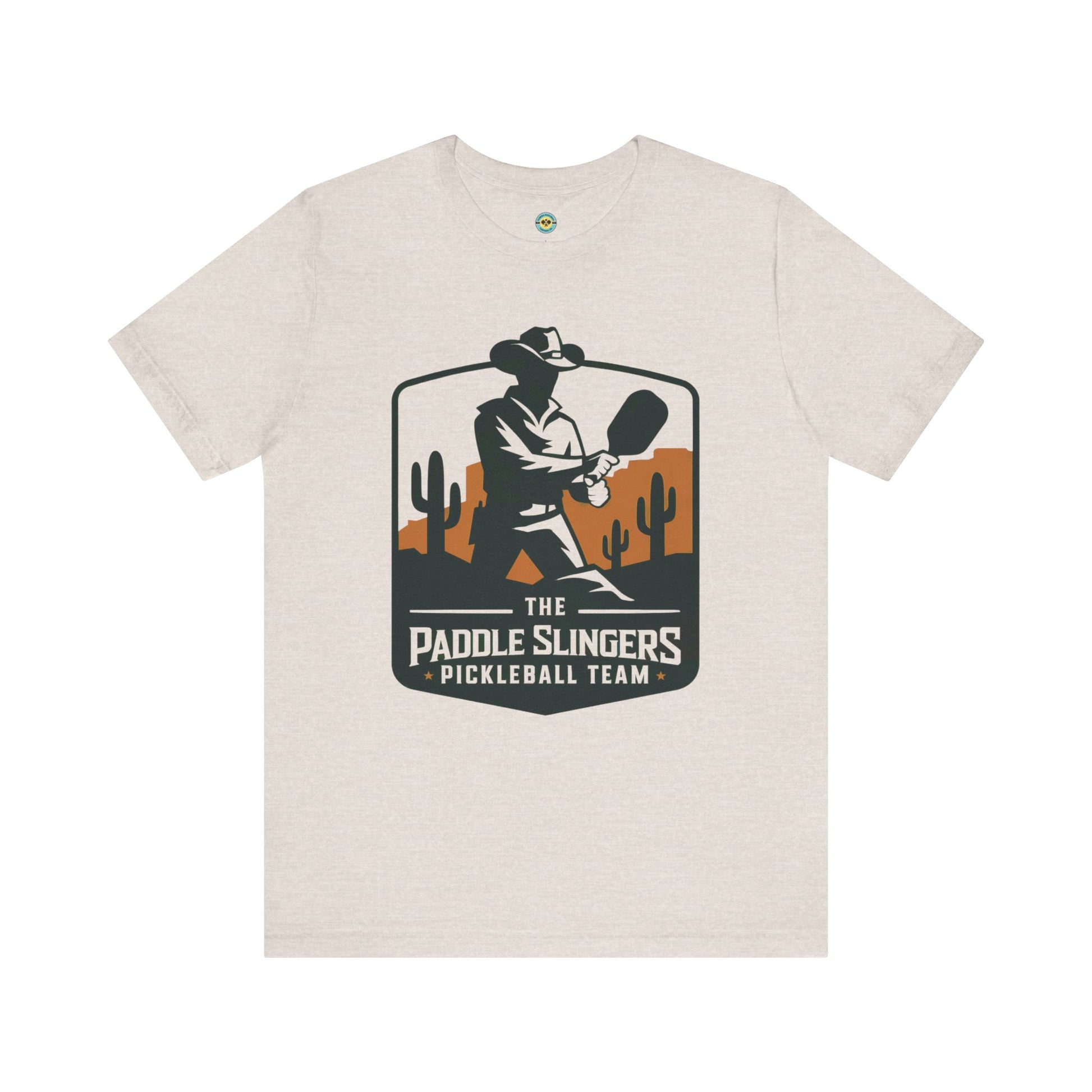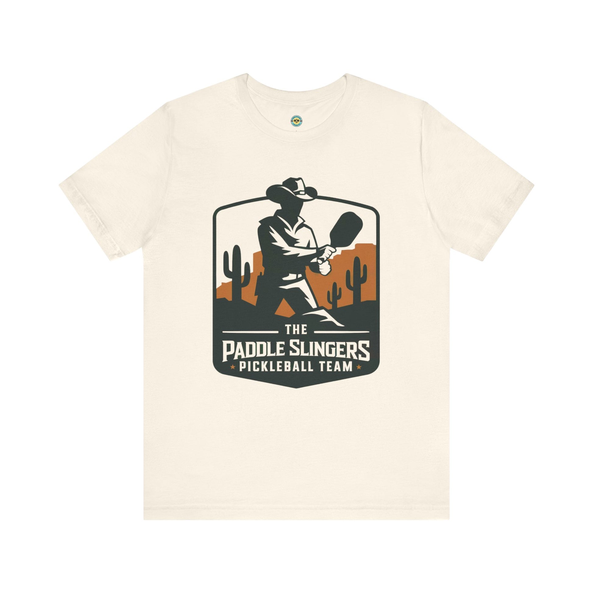 Every pickleball posse needs a name, and "The Paddle Slingers" is perfect for teams ready to serve up some Wild West-style competition. Whether you're riding into a tournament or just having fun with your crew, this tee brings a bit of swagger to your game.