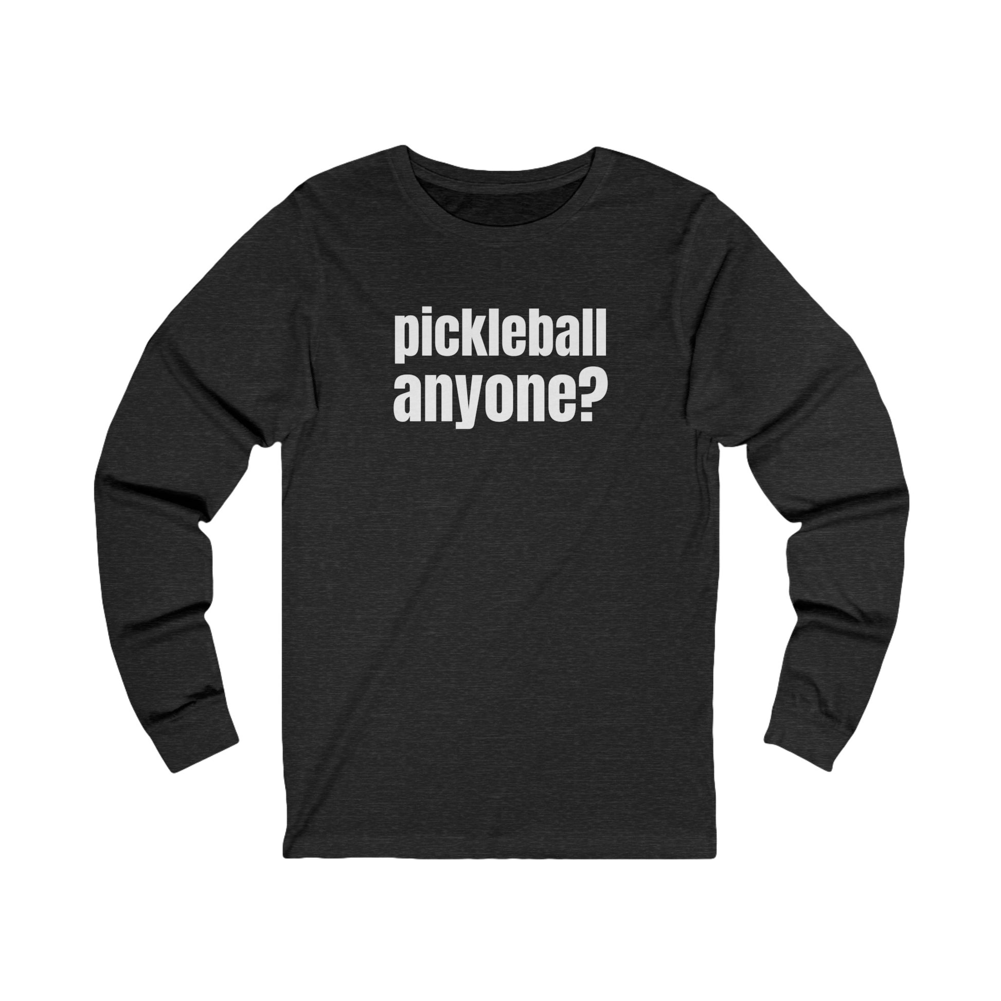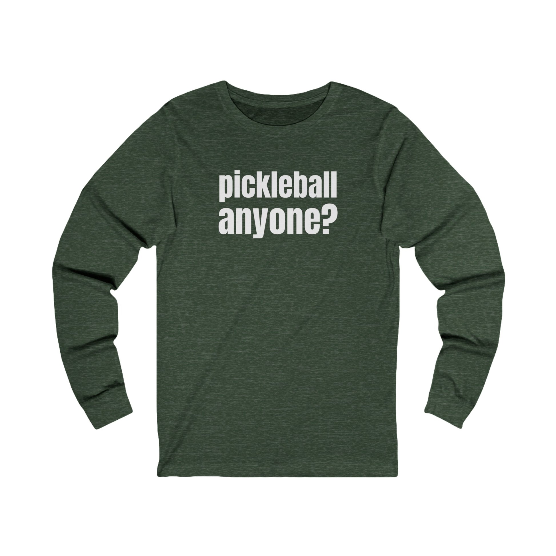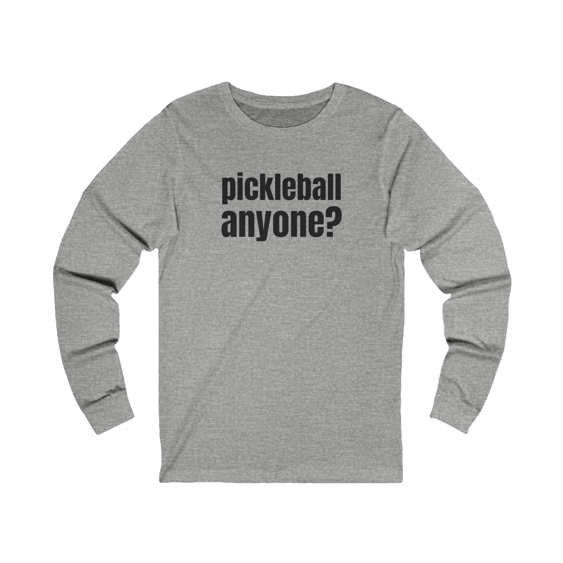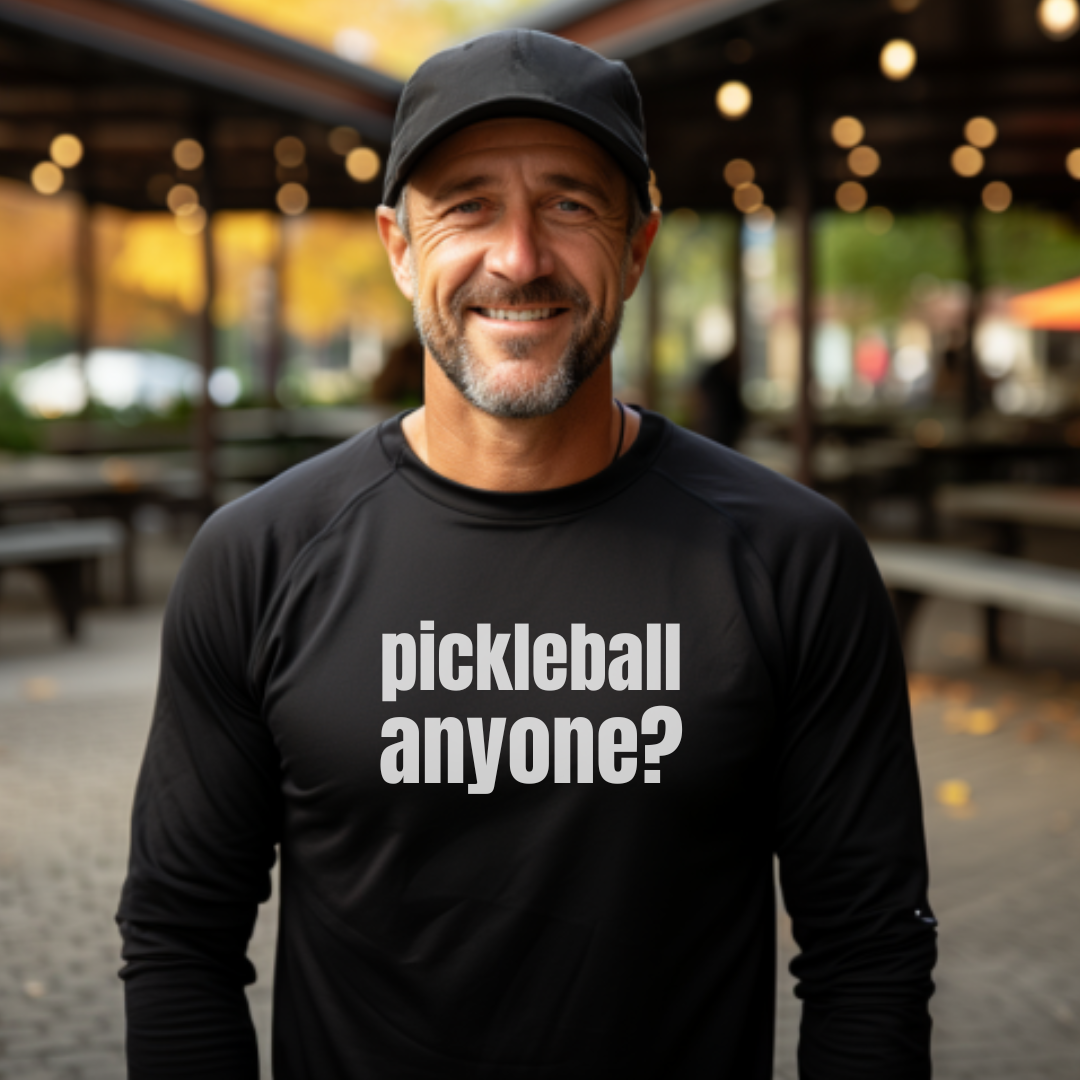 Looking for some court time? Our "pickleball anyone?" long sleeve tee is perfect for anyone who can't get enough of this great game. Grab your paddle, hit the court, and let's play!