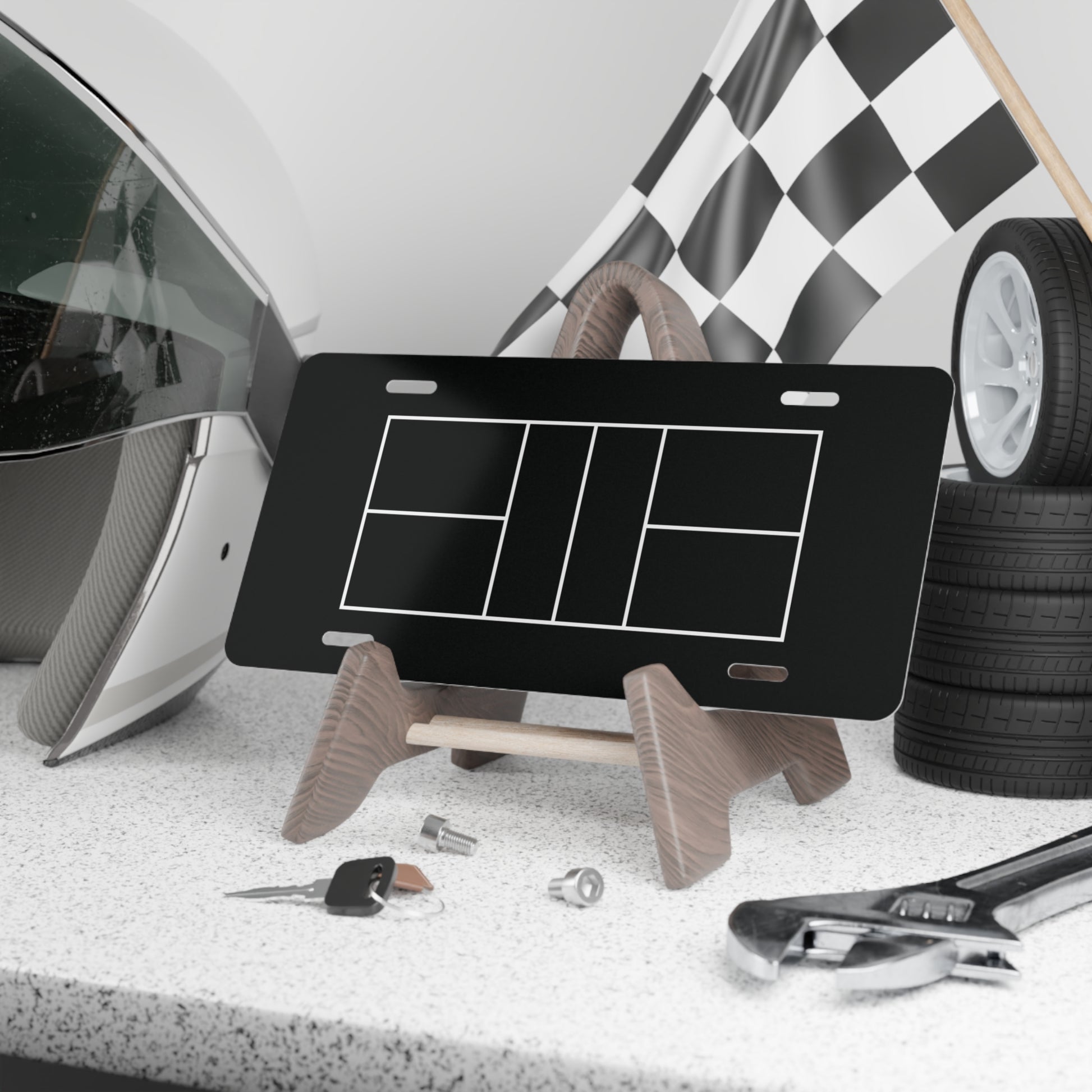Show off your passion for pickelball with this sleek vanity plate showcasing a pickleball court outline. It’s the perfect way to represent the game wherever you go.