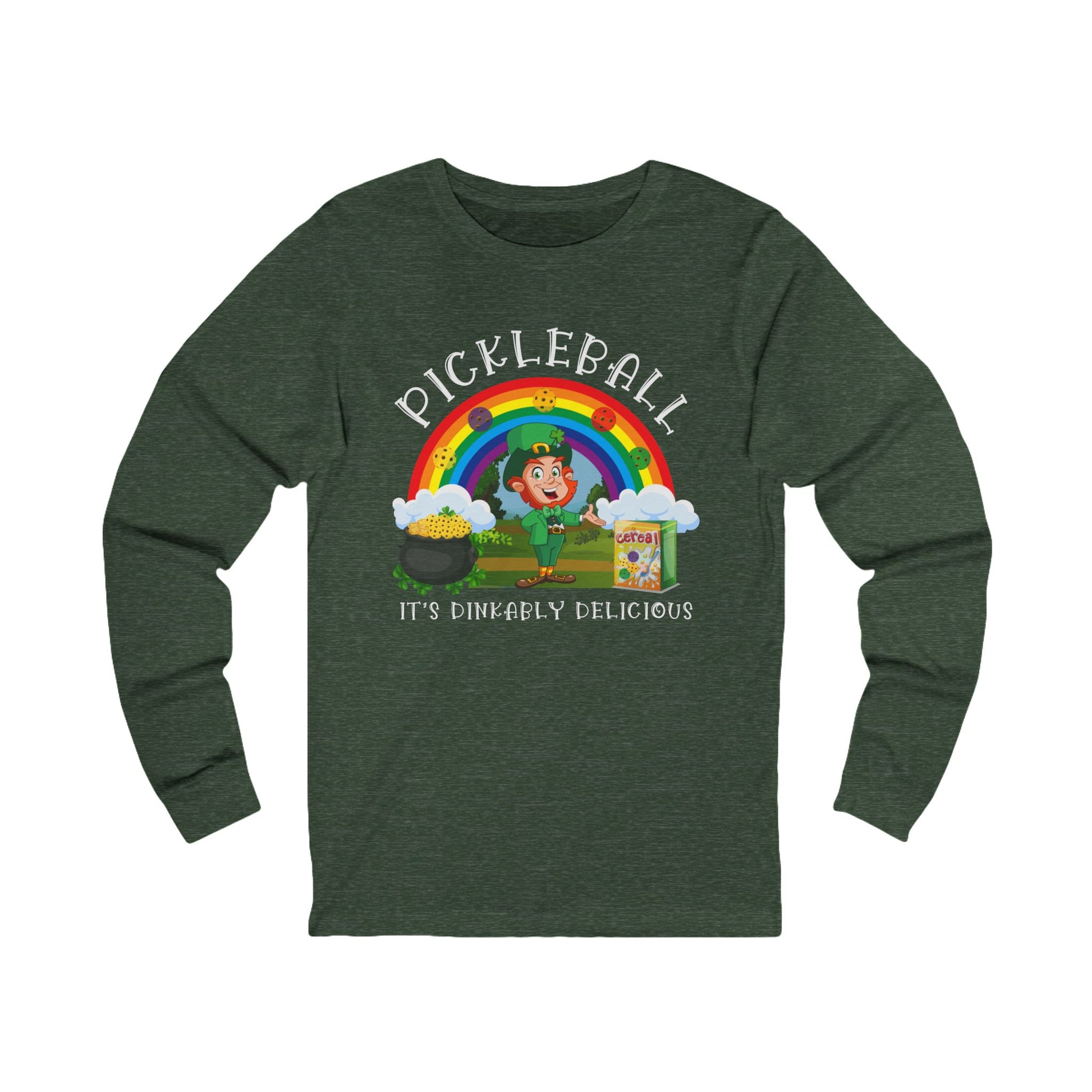 We're channeling our favorite lucky leprechaun with this fun long sleeve pickleball tee celebrating all things Irish. Pickleball - It's Dinkably Delicious!