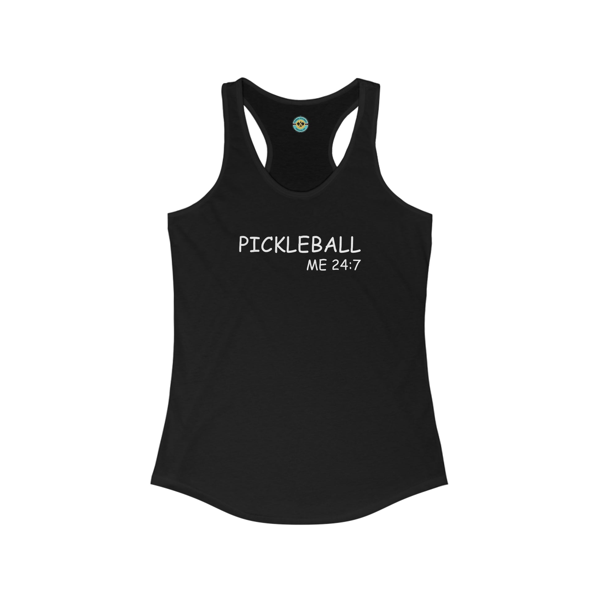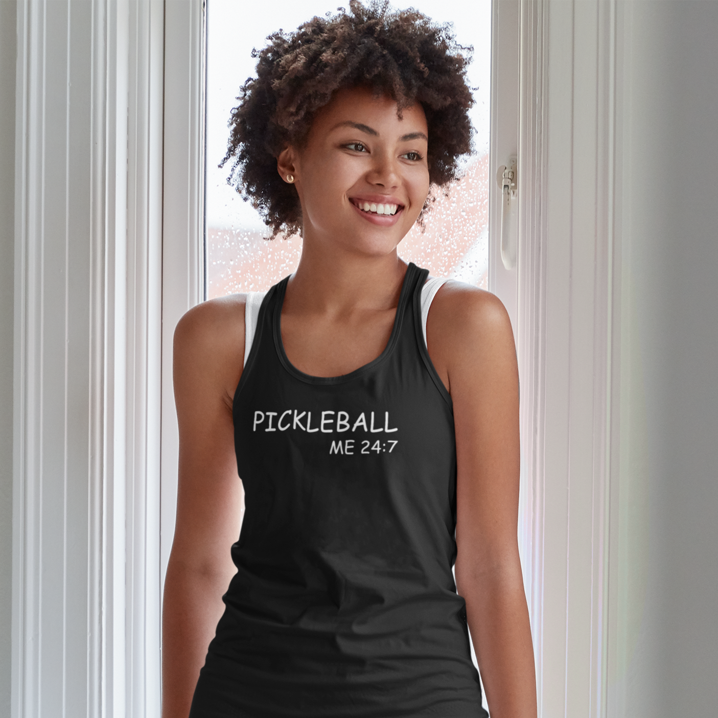 If you live and breathe pickleball, this racerback tank is a testament to your devotion to the game, representing a 24/7 commitment that blends your lifestyle and passion seamlessly. This tank is perfect for gameplay, and is a badge of honor for anyone who finds their rhythm in the bounce of the ball and the thrill of the game, every hour of every day.