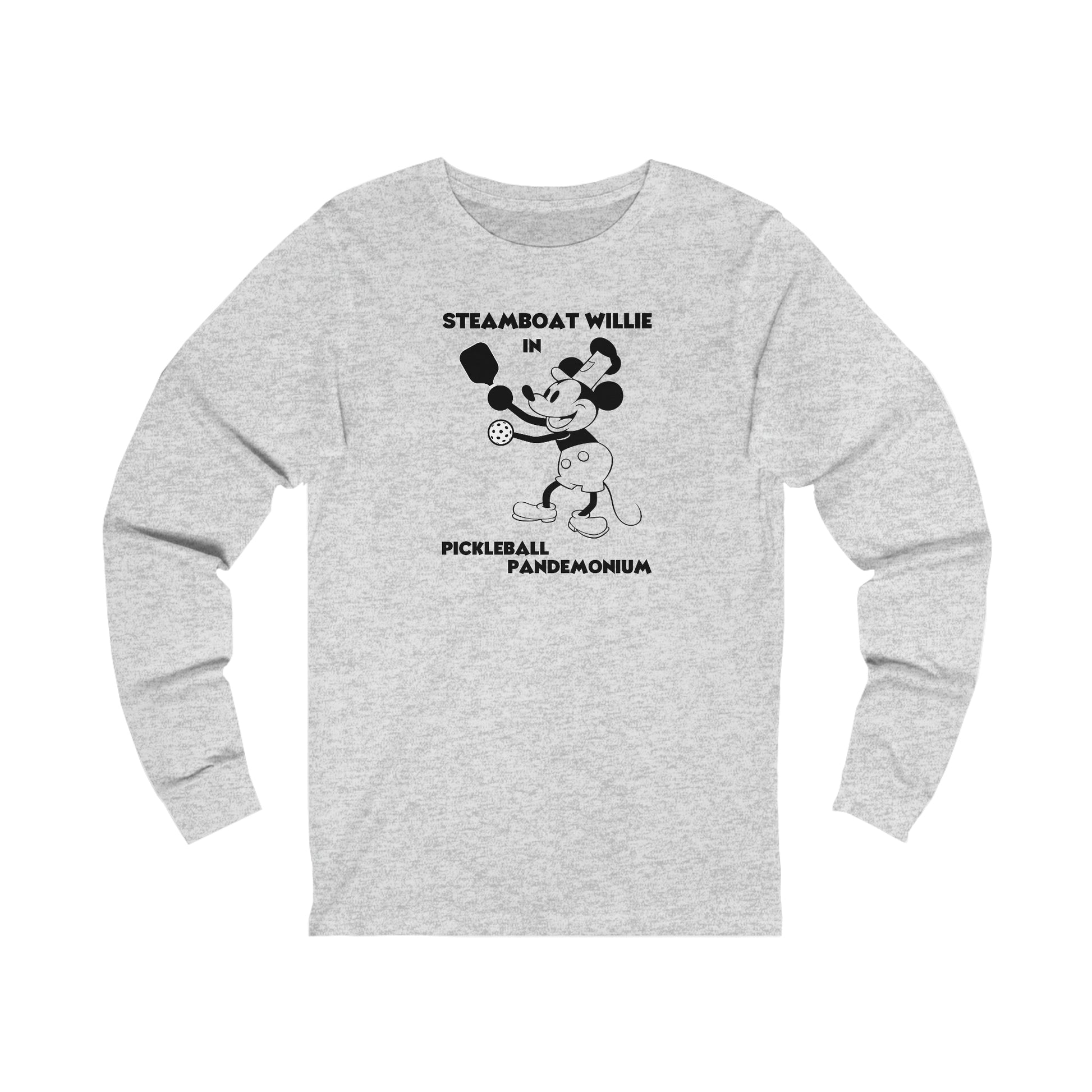 Steamboat Willie is now part of the public domain and free to explore new hobbies, and he's caught the pickleball bug! Celebrate your love of Mickey and his new-found freedom with this super comfortable long sleeve Pickleball Pandemonium tee.