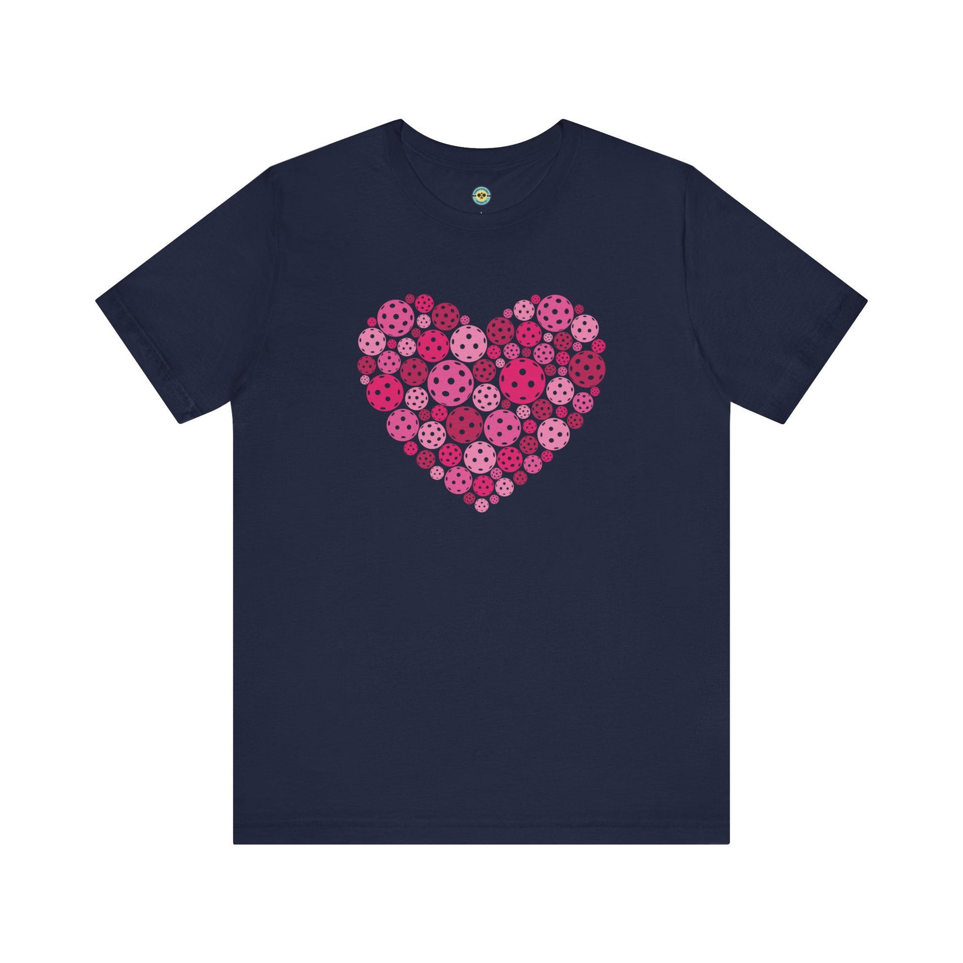 Celebrate the sport you love with this soft cotton tee featuring pink mini pickleballs in the shape of a heart. Perfect for wearing all year round!