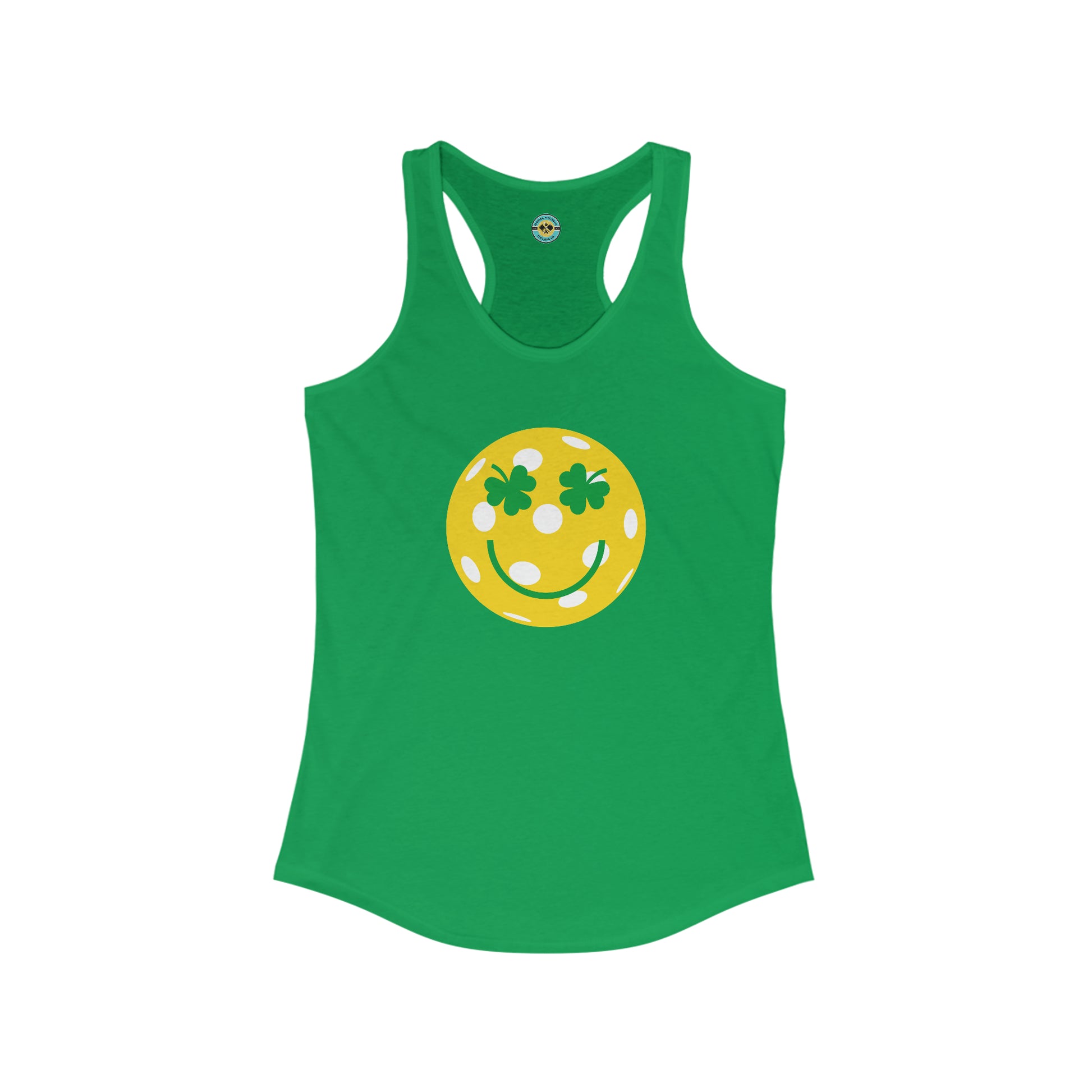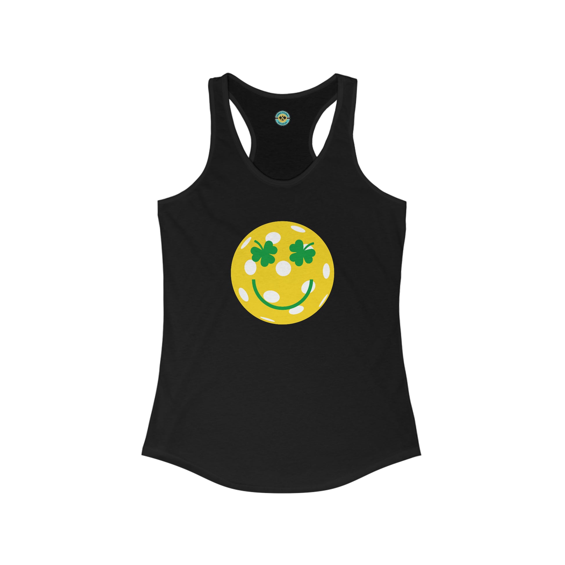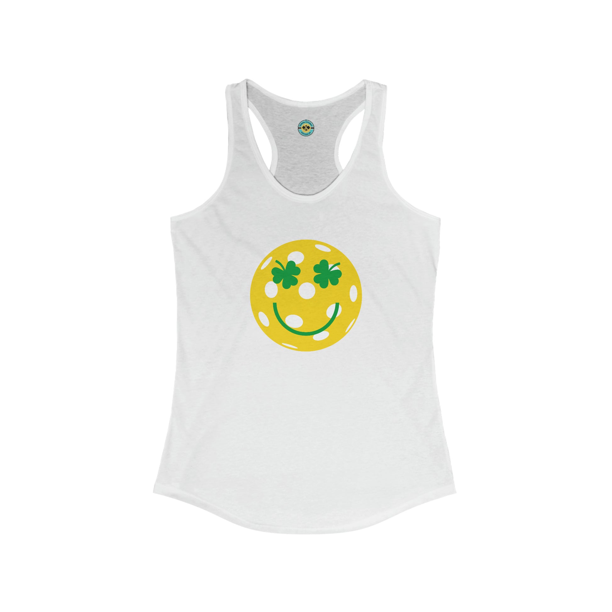 Pickleball Shamrock Smiley Face Women's Racerback Tank
