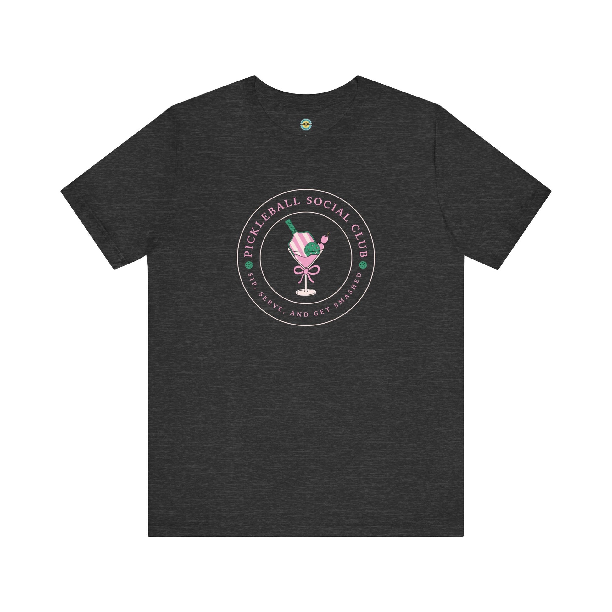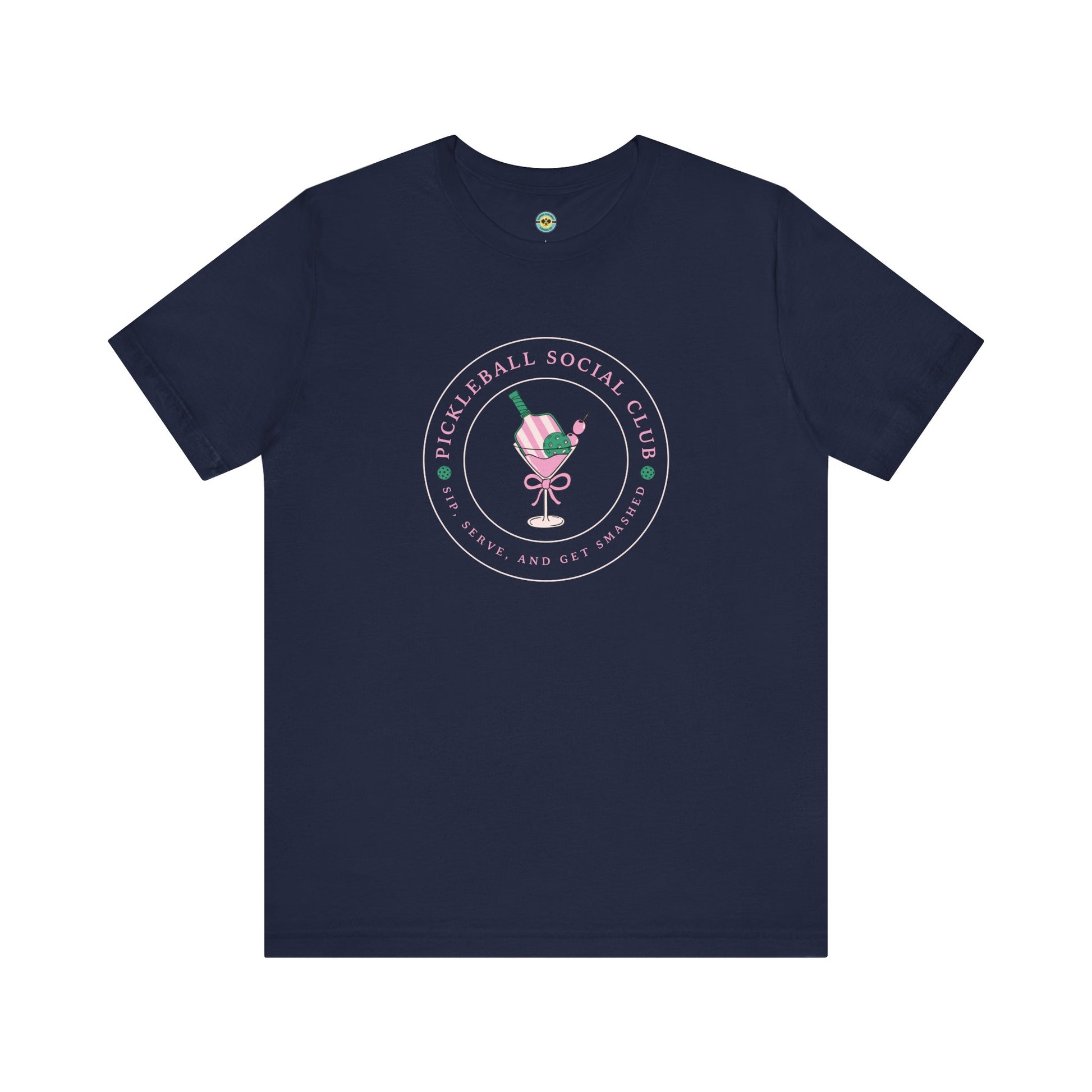 Celebrate the fun and friendships that pickleball brings with our Pickleball Social Club - Sip, Serve & Get Smashed tee. This classic design on the left chest is perfect for players who like to play hard and socialize, on and off the court.