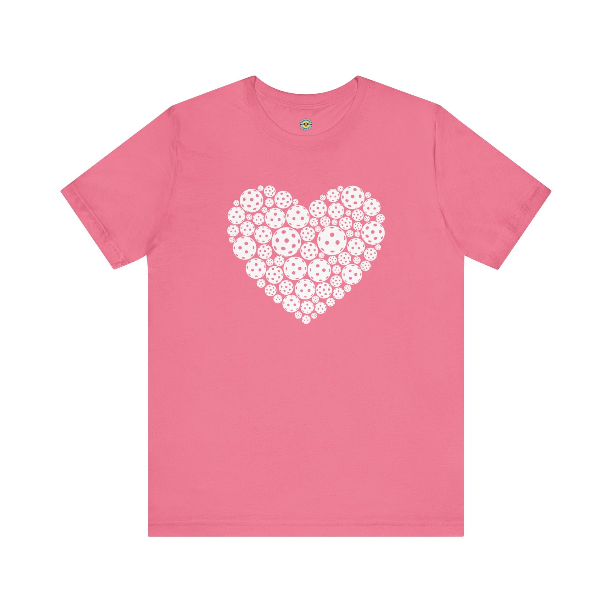 Celebrate the sport you love with this soft cotton tee featuring white mini pickleballs in the shape of a heart. Perfect for wearing all year round!