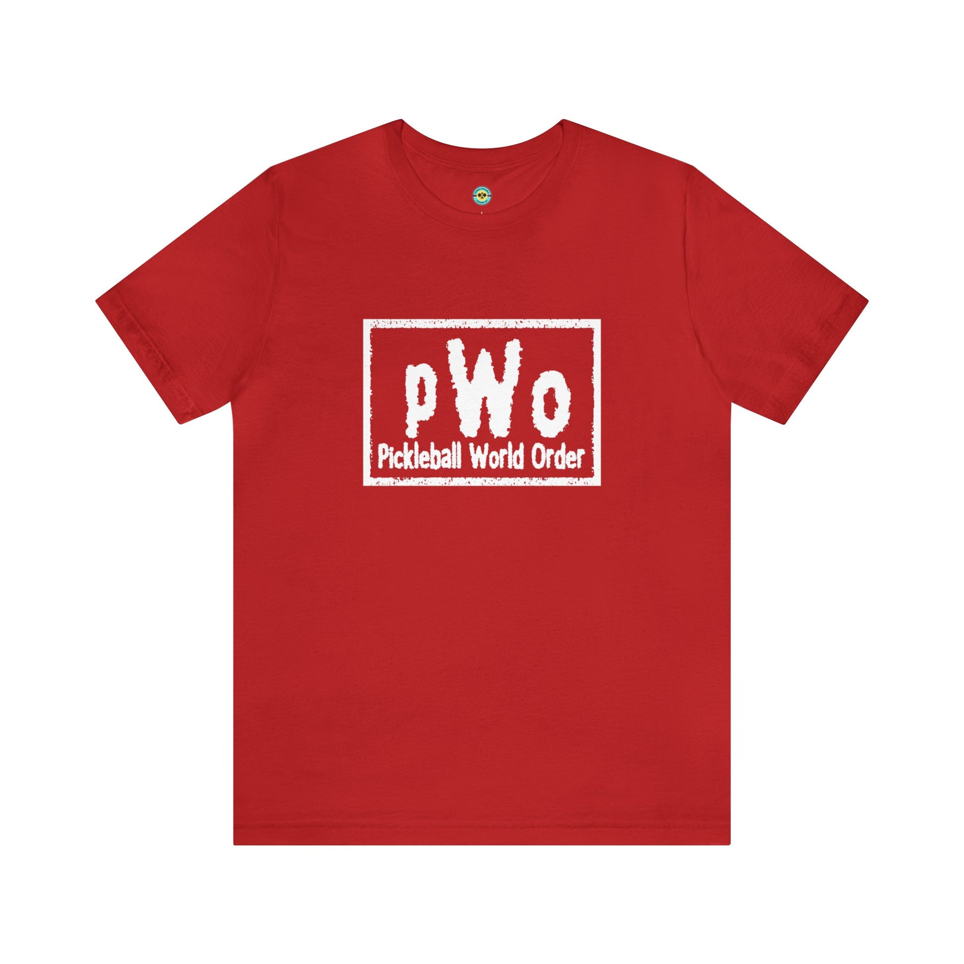 Step into the ring of pickleball dominance with our epic t-shirt, paying homage to the legendary wrestling group. Emblazoned with the powerful words "PWO: Pickleball World Order," this tee unites the spirit of rebellion and supremacy, showcasing your commitment to ruling the pickleball court with style and power.