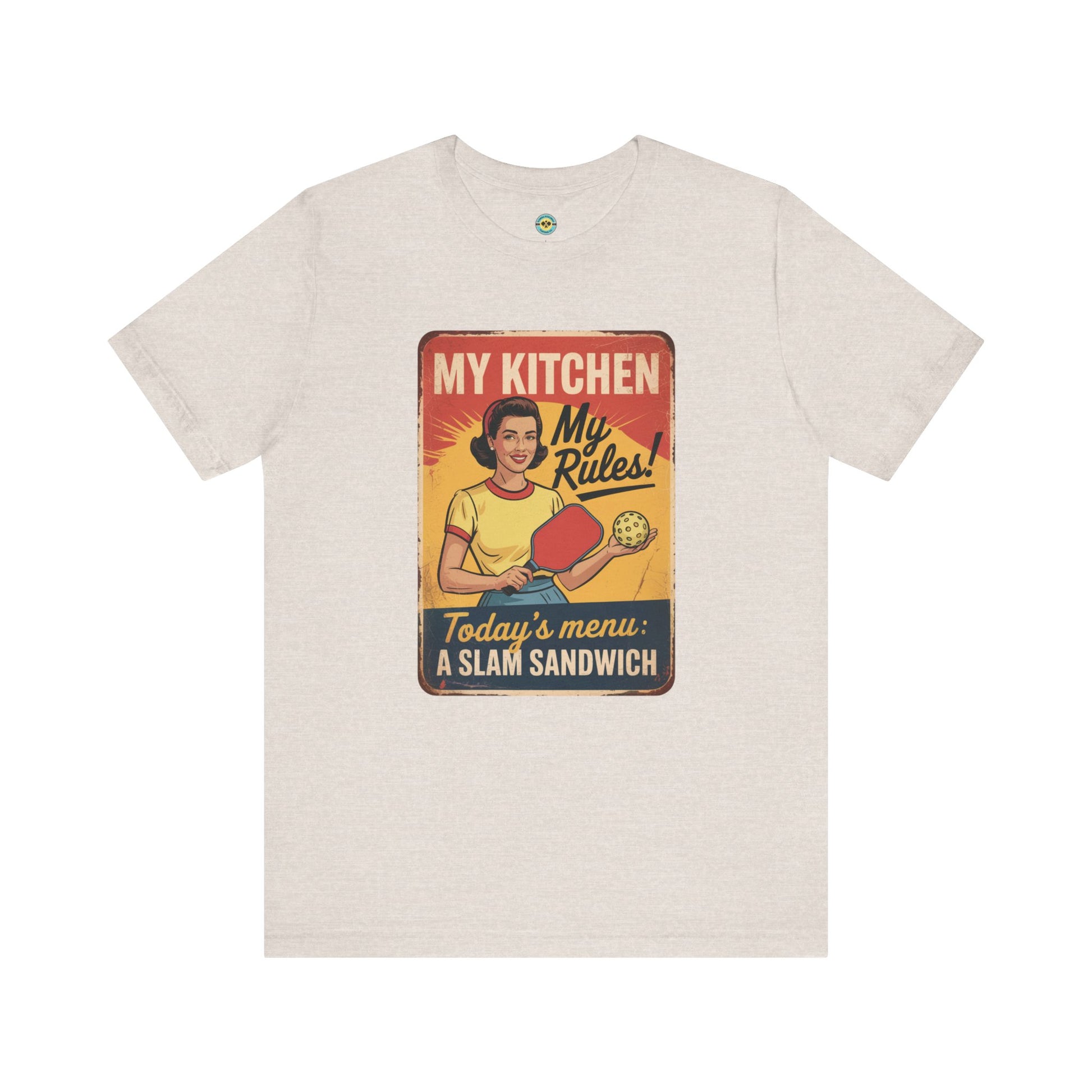 Serve up serious vintage vibes with a tee that feels straight out of an old-school diner—with a pickleball twist. This retro pickleball shirt is made for women who bring a little flair to the court and don’t mind calling the shots in the kitchen. Slam sandwich, anyone?