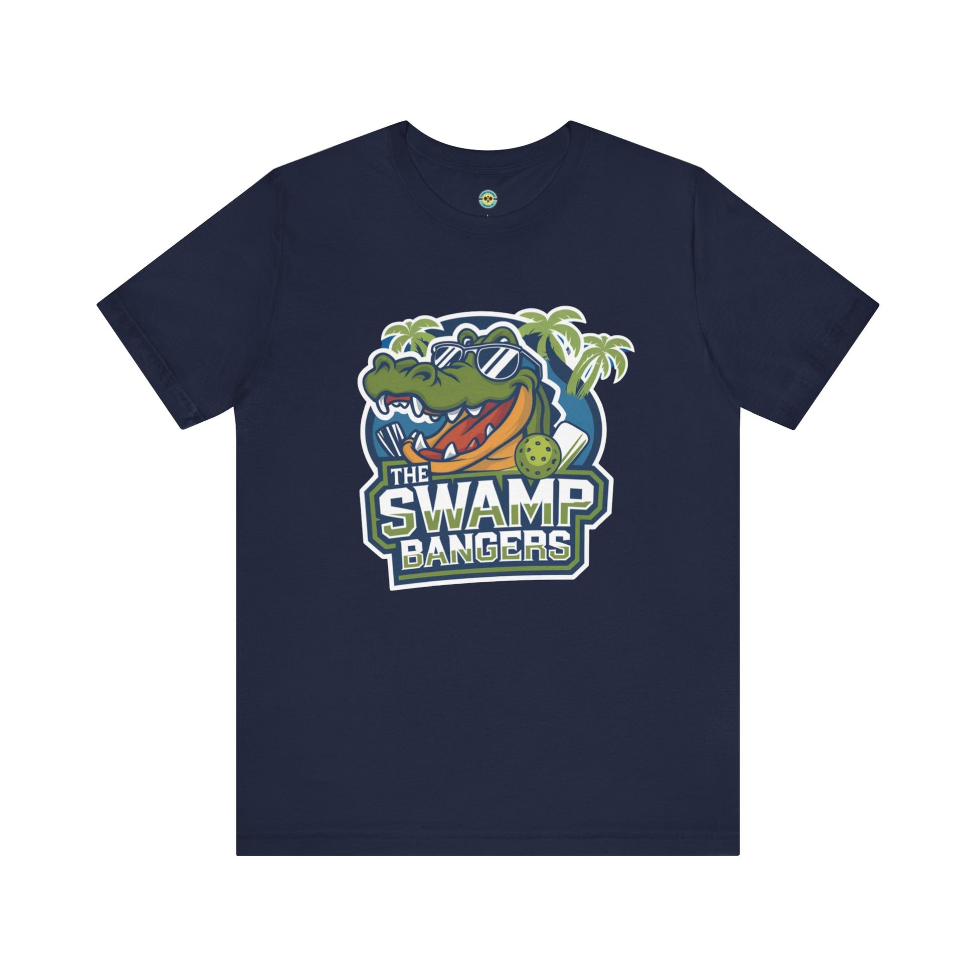 The Swamp Bangers don’t dink around—they attack. Just like a gator in the wild, your team waits for the perfect moment to pounce with fast hands and crushing shots. Whether you’re overpowering opponents or holding down the kitchen, this pickleball team tee lets everyone know you play with bite.