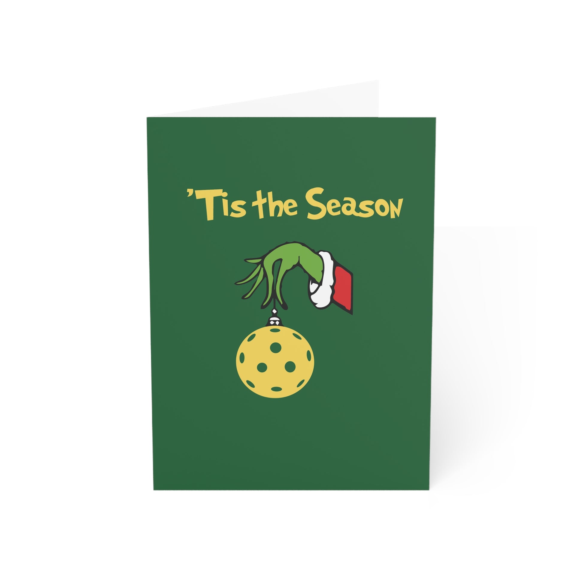 This festive pickleball holiday card features that iconic green hand dangling a red pickleball ornament, just tempting you to play! Featuring the words 'Tis the Season on the front and a delightful message inside, these will bring a touch of holiday magic to everyone who receives it.