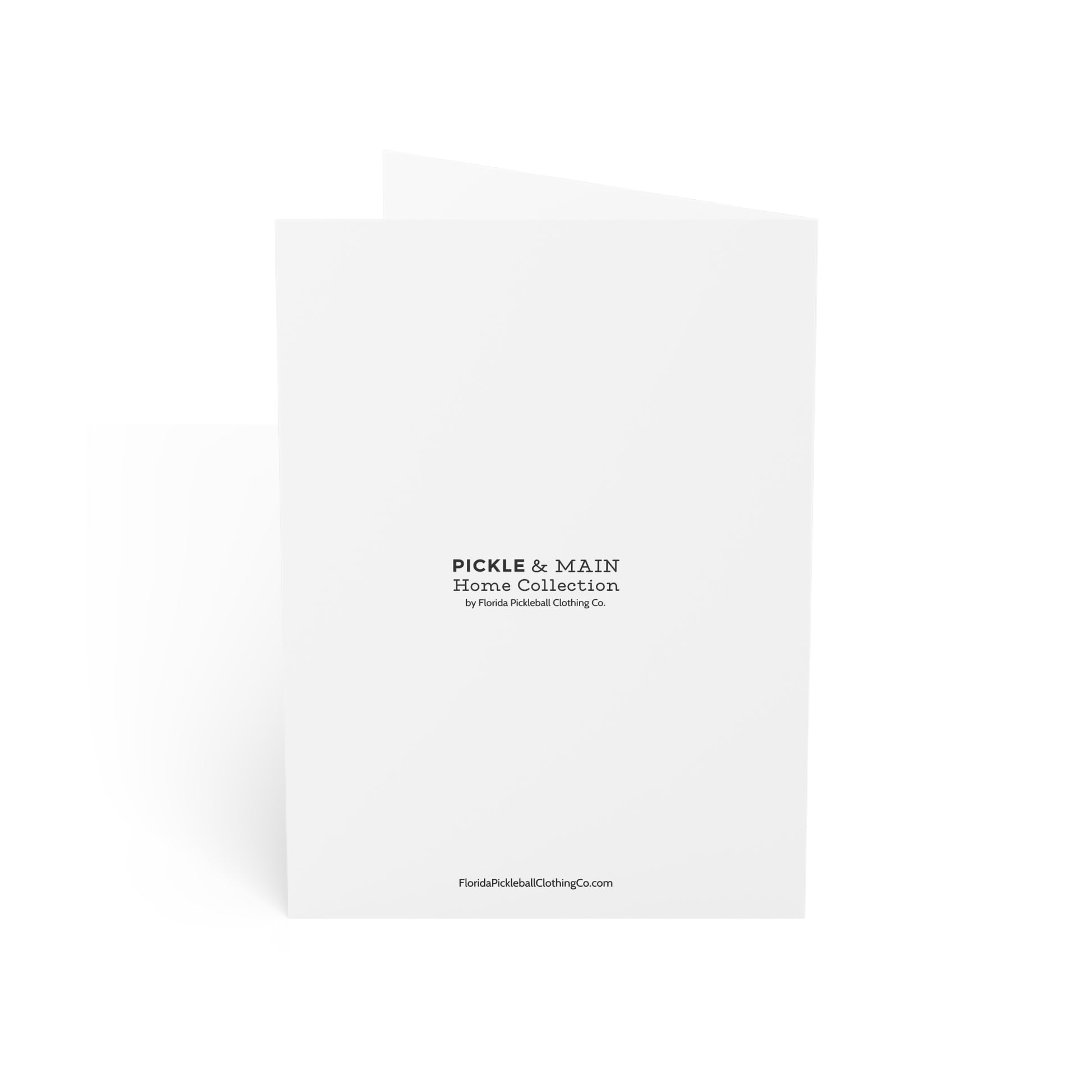 - 5" x 7" vertical card with an original pickleball-themed message and design