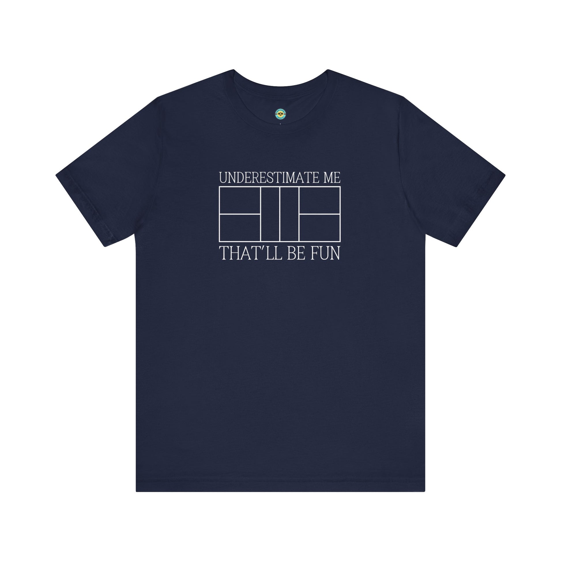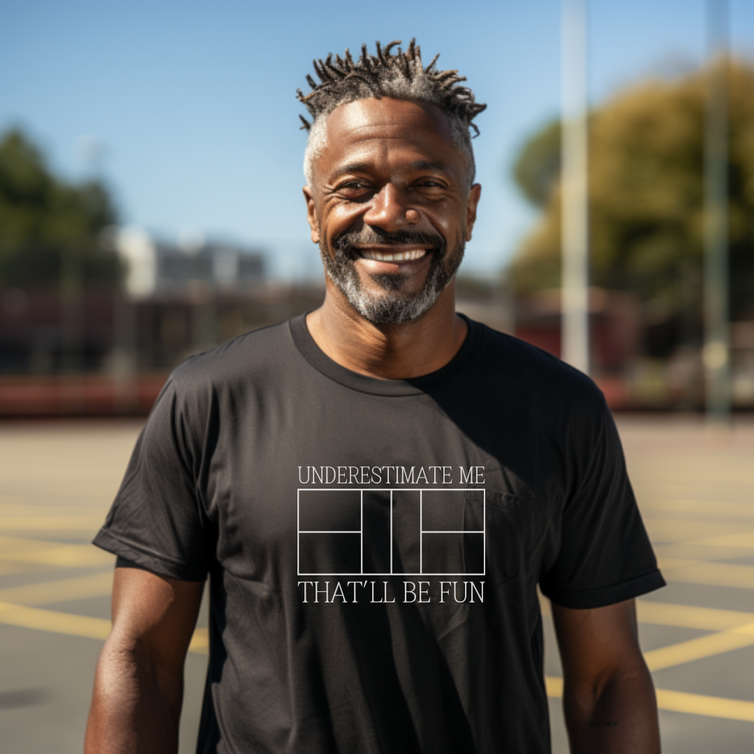 Step onto the court with attitude in our "Underestimate Me That'll Be Fun" tee. This shirt is for any player who thrives on proving the doubters wrong. Show them that underestimating you was their first mistake. Game On!