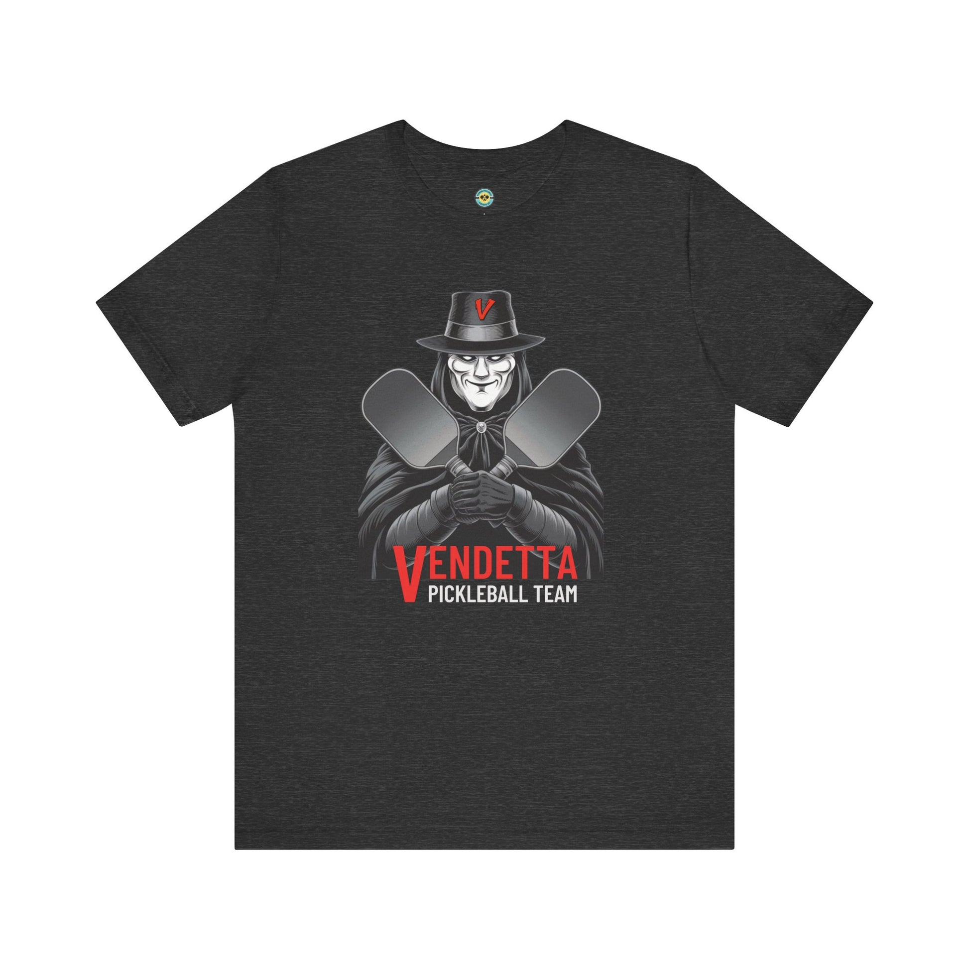 Pickleball is a game of skill, strategy, and sometimes… a little payback. The "Vendetta Pickleball Team" t-shirt is perfect for partners and teams who play like every match is make or break. Show up masked in confidence, take control of the court, and let your game do the talking.
